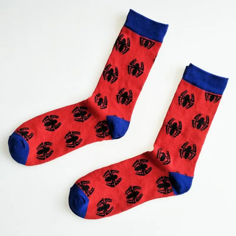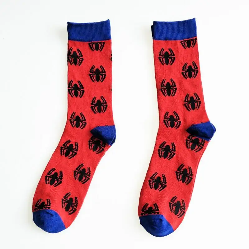 2 пары, мужские носки с персонажами из мультфильмов, европейский стиль, хлопковые длинные носки с человеком-пауком, высокое качество
