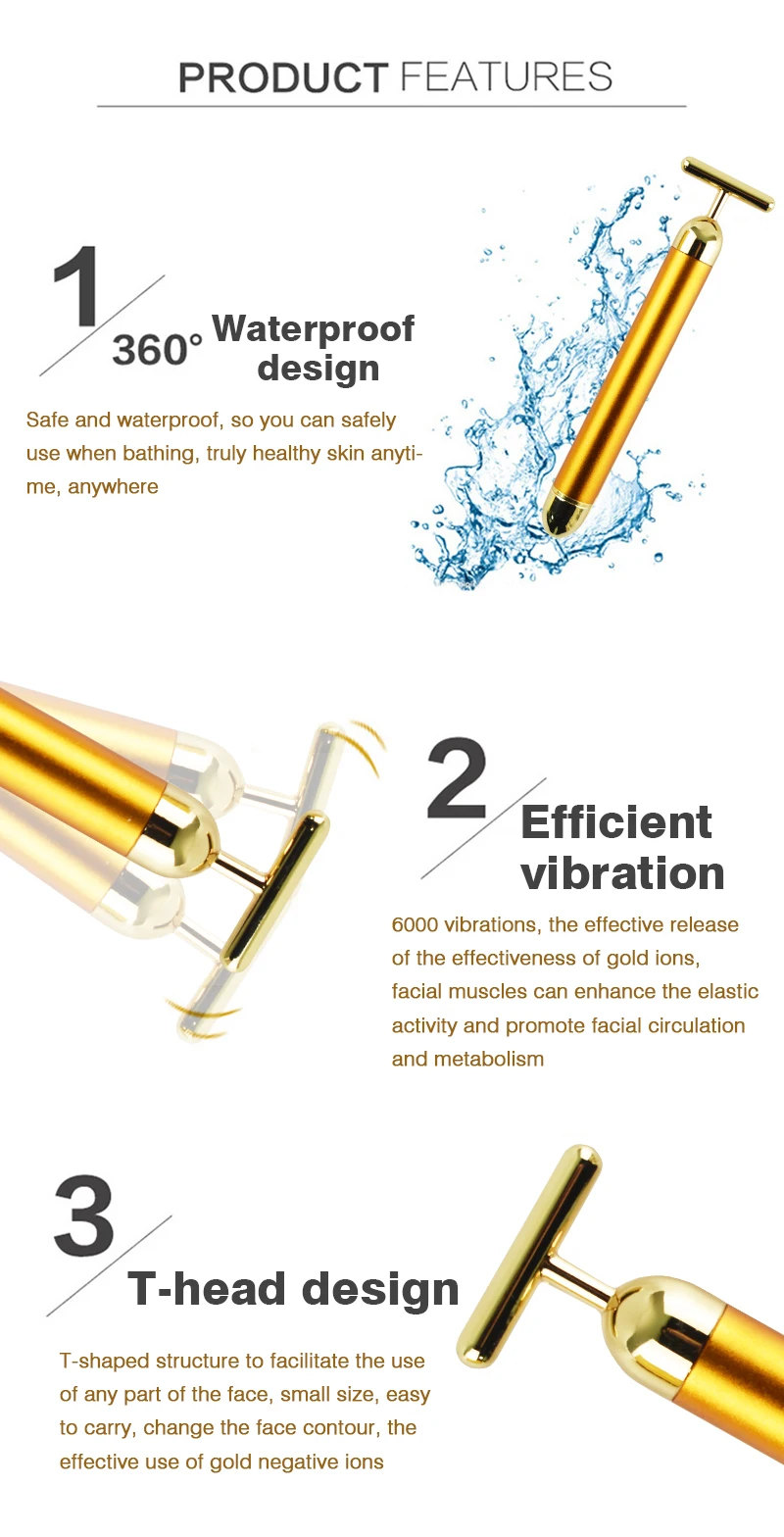 Энергия 24K Gold T Beauty Bar роликовый импульсный укрепляющий массажер для лица антивозрастной Лечение морщин для похудения палочка, разглаживающая морщины