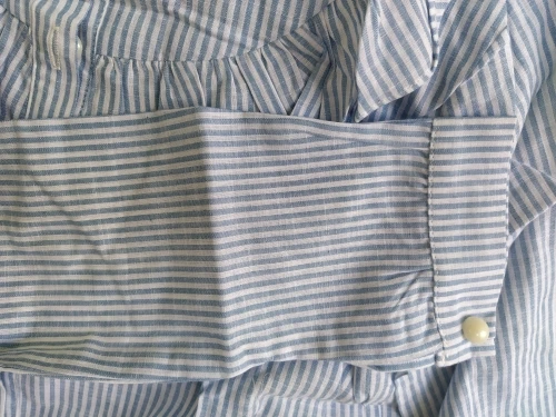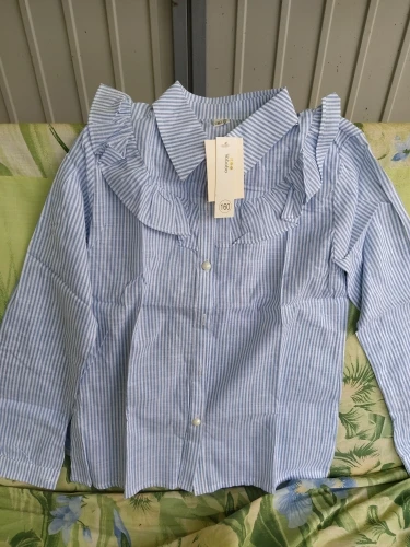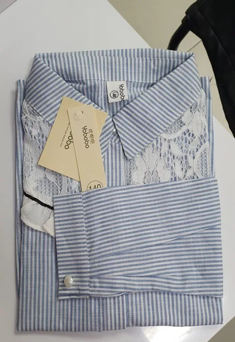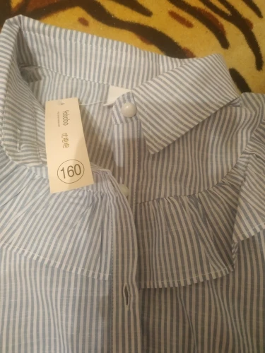 Немного маломерит, брали в голубую полоску с белым воротничком, очень красивая , нежная. Доставка очень быстрая