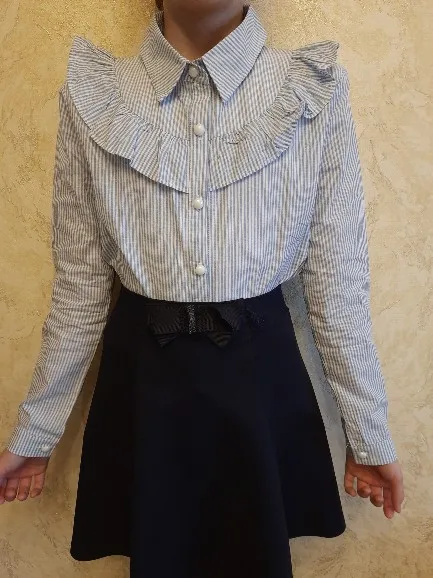 Дочке блуза очень понравилась.Сидит хорошо, есть небольшой запасик, думаю, на будущий год хватит.Качество прекрасное.