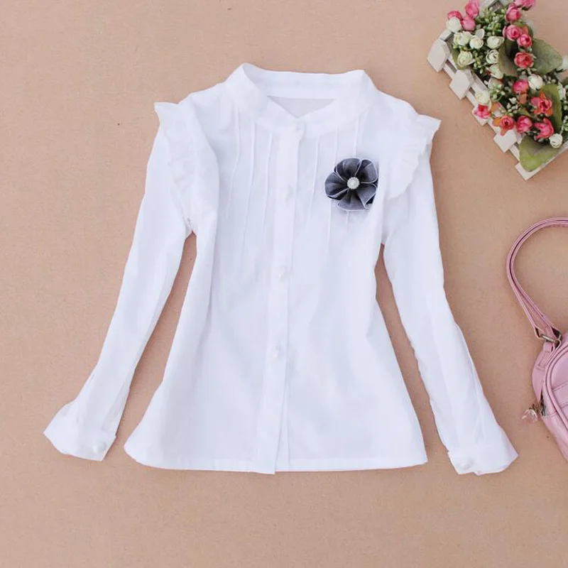 Рубашка хлопковая для девочек-подростков, с отложным воротником и длинным рукавом