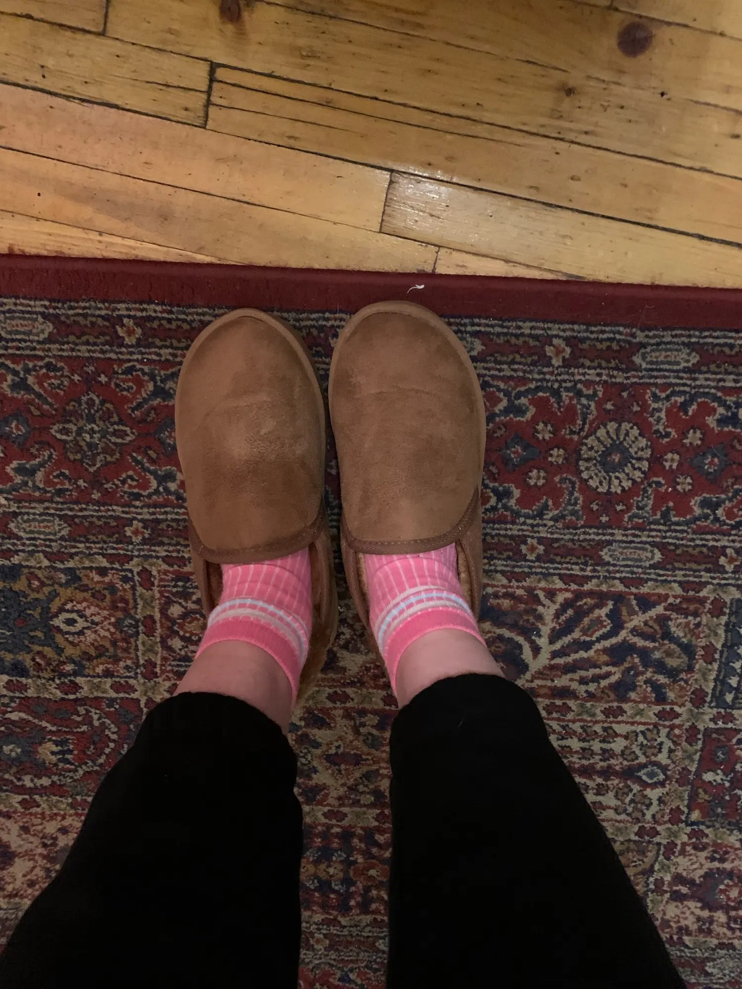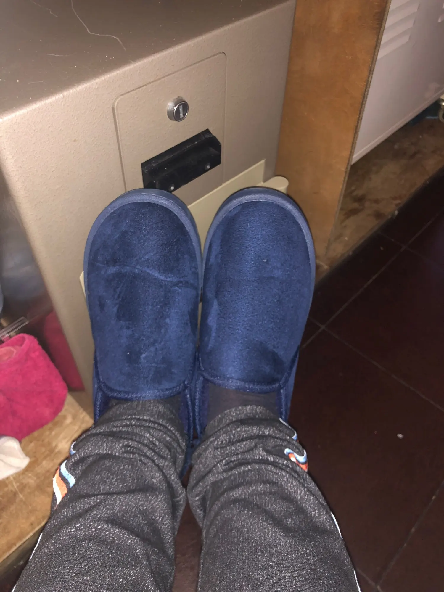 Доставка была очень быстрой. Они такие теплые и удобные! Они слишком большие, поэтому мне пришлось заказать меньший размер, но это рисковало заказать онлайн ..
