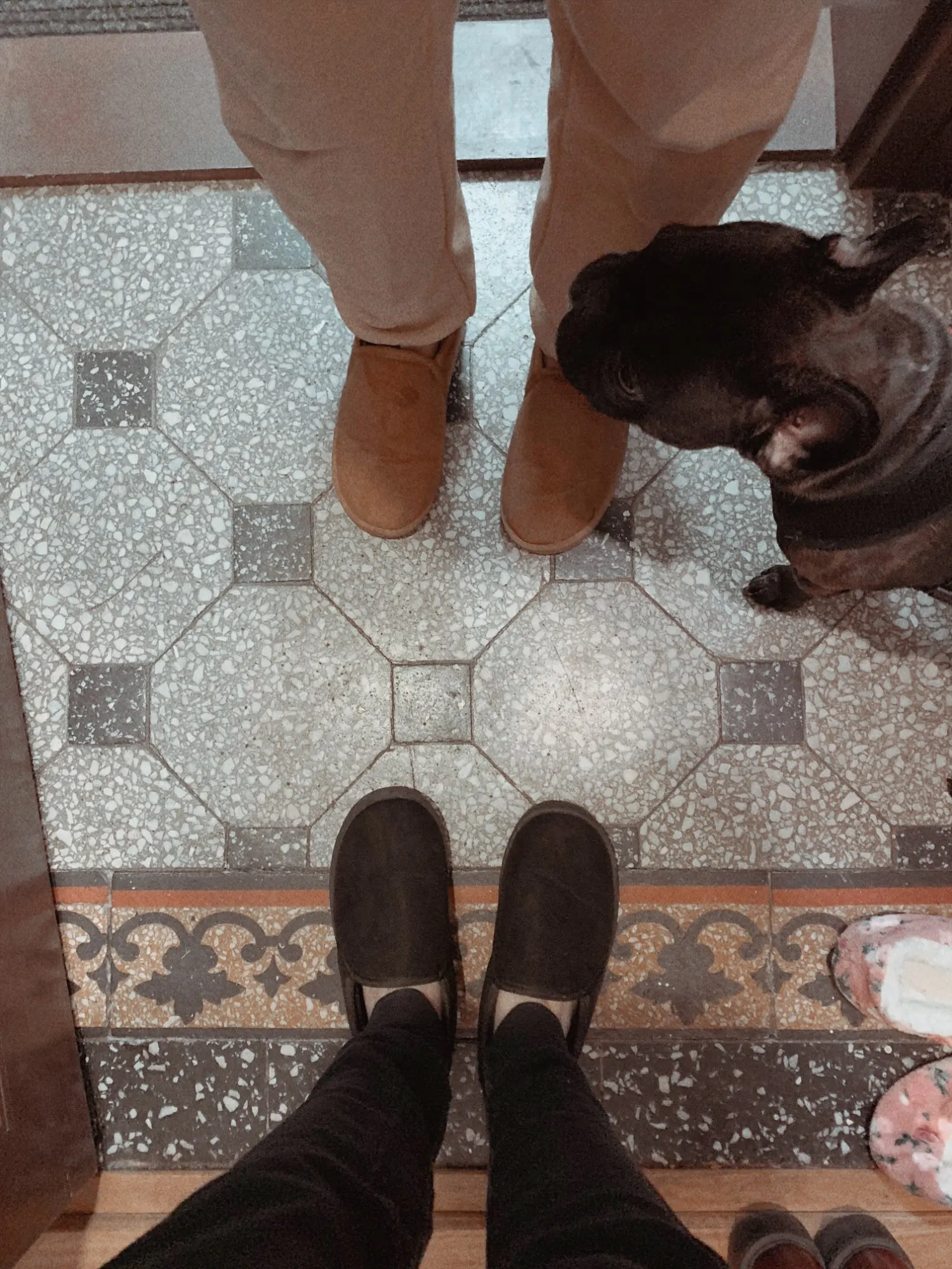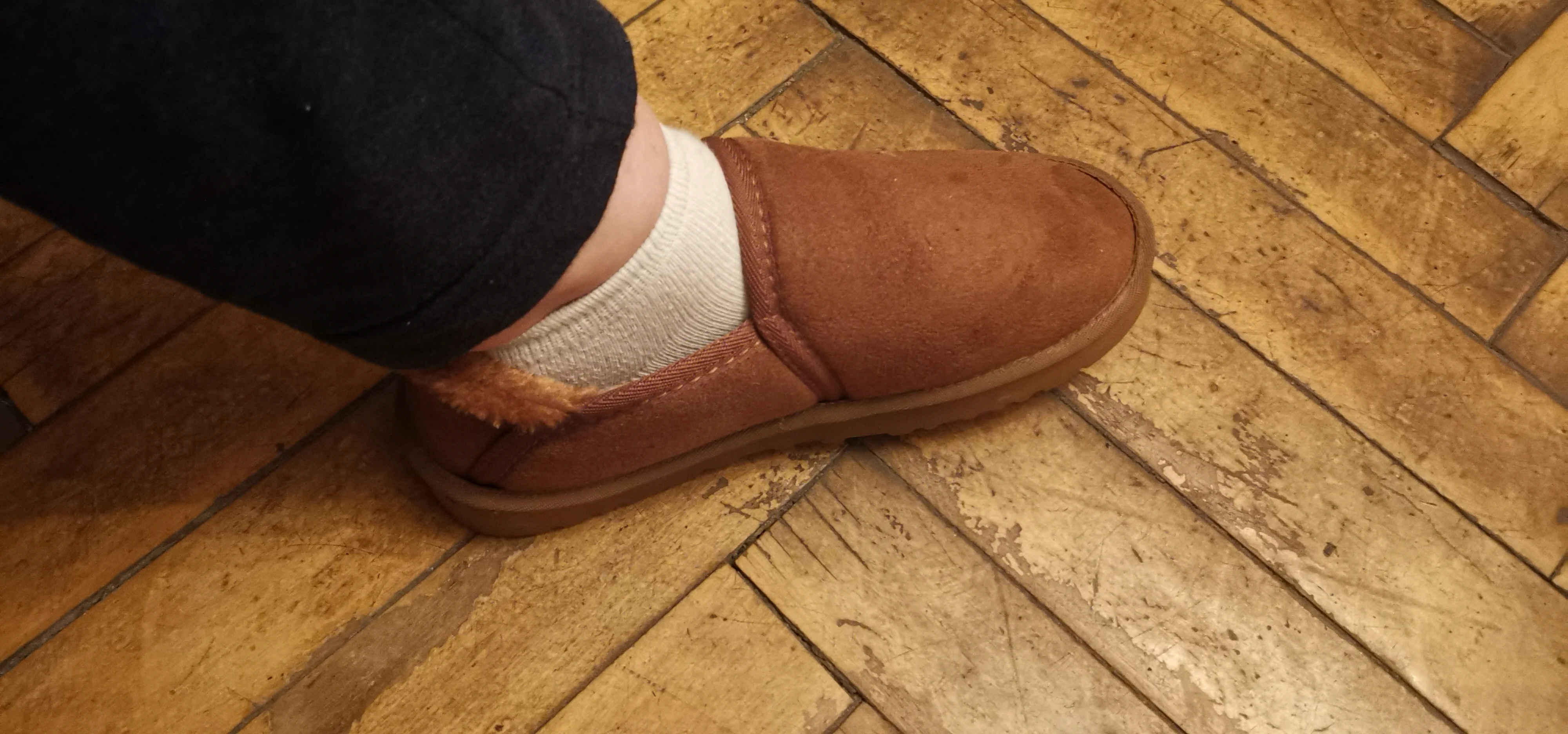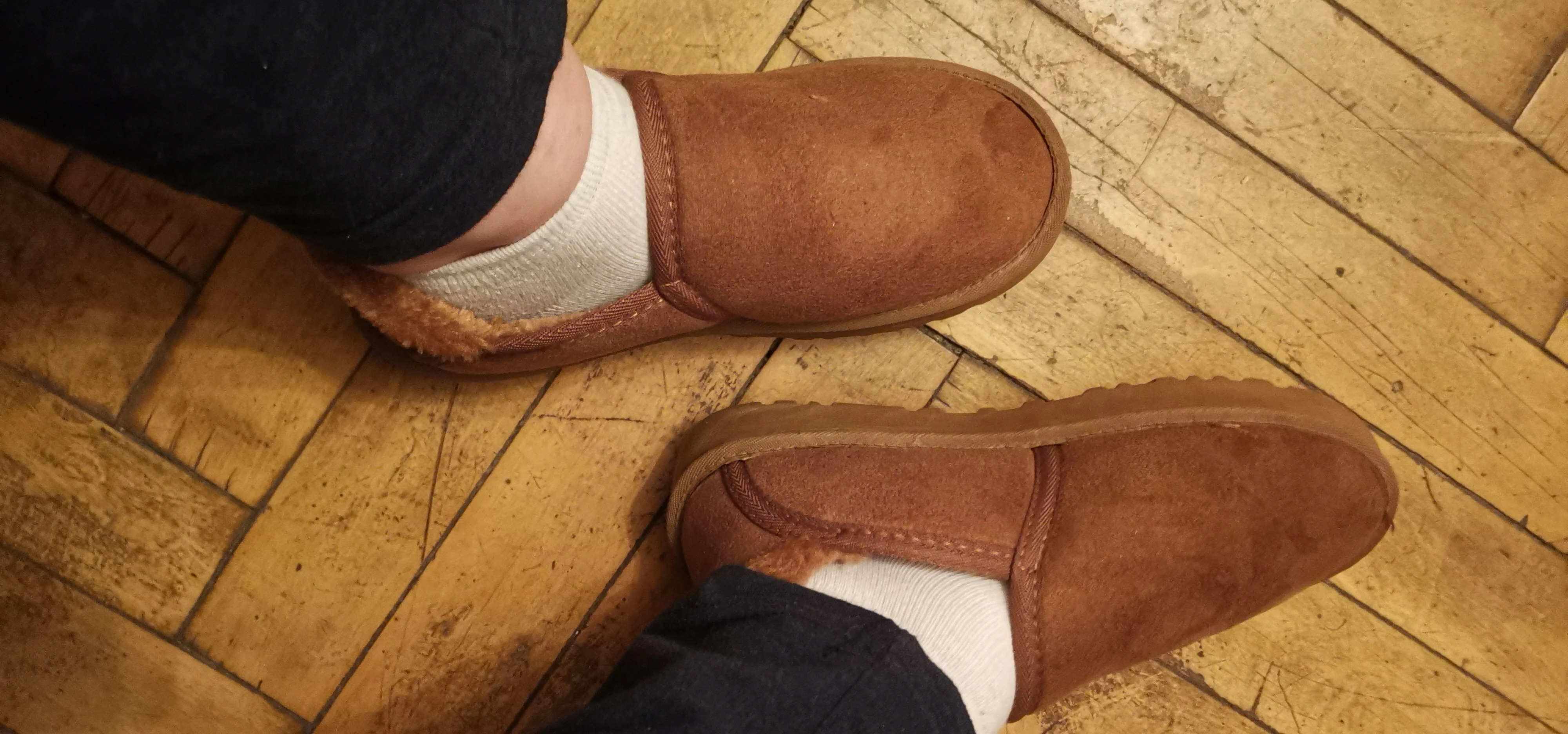 Я получил себе и парню пару, чтобы ходить по собаке или надевать, чтобы быстро взять мусор или забрать доставку. Очень хорошо Это как угги. Мой парень надел его и не мог не сказать, насколько он пушистый и мягкий внутри. Очень хорошо рекомендую, доставка в Прагу была около месяца. Мы очень довольны!