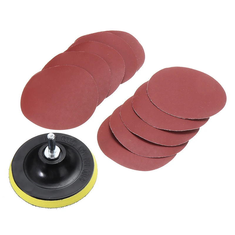 10 шт. шлифовальный диск, шлифовальная бумага 1000 грит 4 дюйма + шлифовальная накладка с липучкой + переходник для хвостовика 45x7 мм для полировки и очистки