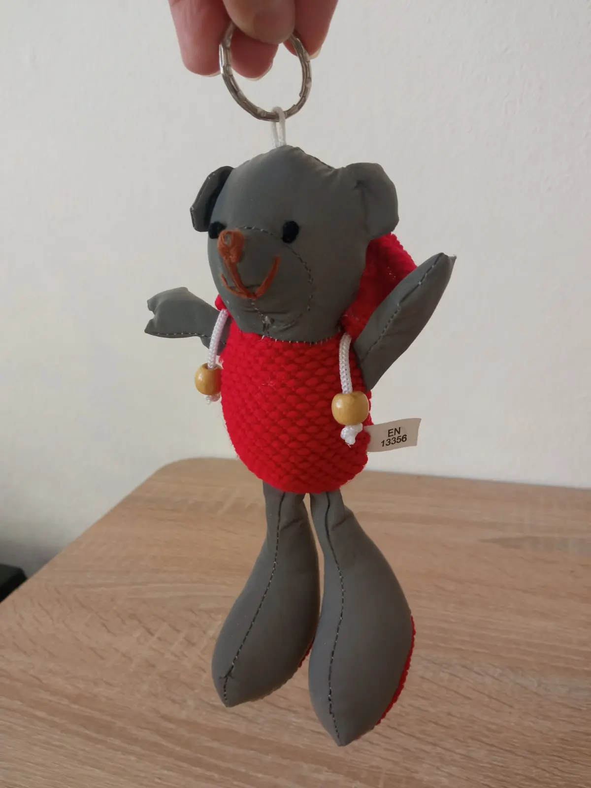 Доставка 12 дней к Германии. Игрушка симпатичная и Светоотражающая. Костюм вывязывается толстыми нитками, не надевается, а один-кусок с медведем. Но качество швов очень плохое. Криво сшиты, швы не аккуратные, стянуты вместе, нити торчат. Длина 17 см, ширина 5 см.