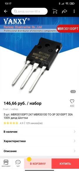 Товар как в описании. У данного продавца заказываю не первый раз - всегда все хорошо. Качественный товар. На диодах падение соответствует даташиту. Отремонтировал БП. Категорично советую данного продавца и товар!!!