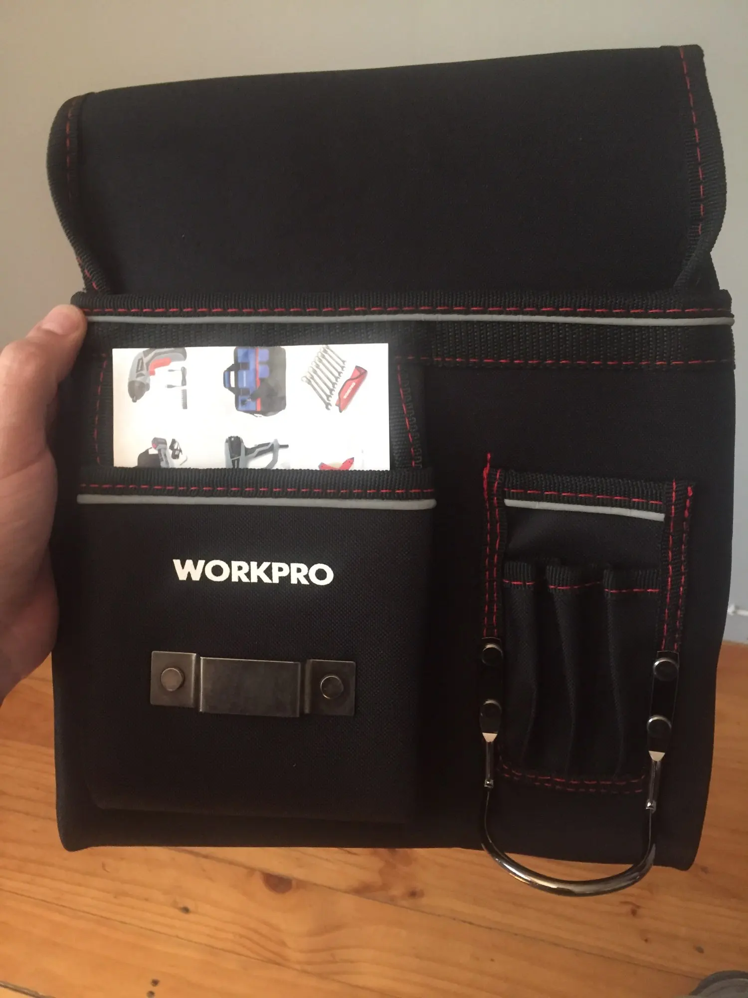 Очень высокое качество! Широкий пояс, надежная пряжка, всё аккуратно прошито, а места с нагрузкой - проклепаны. Да, внешний карман - свободный, не пришит к основе. Это удобно! Упаковано было так, что и хрусталь бы доехал))) Workpro - "держат марку". Спасибо!