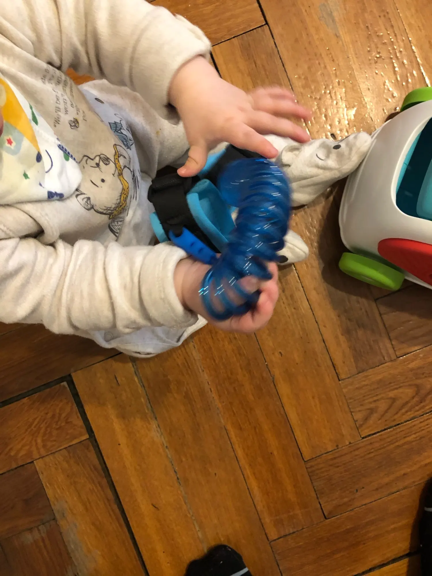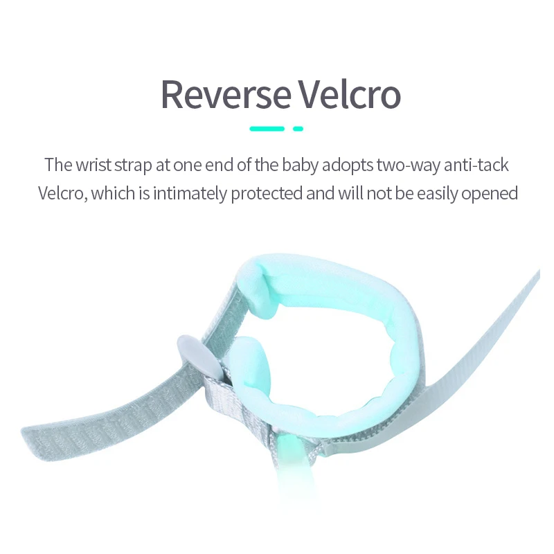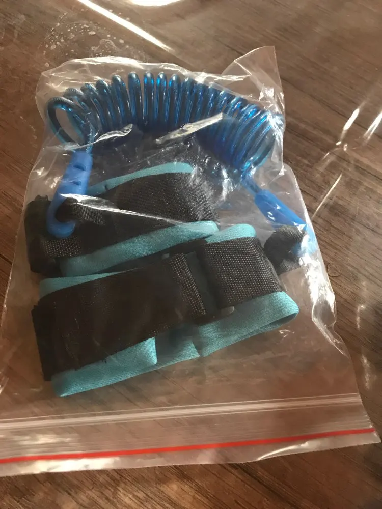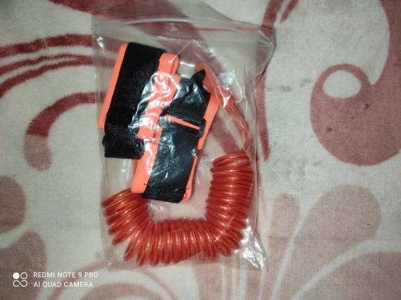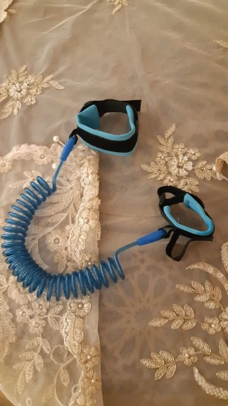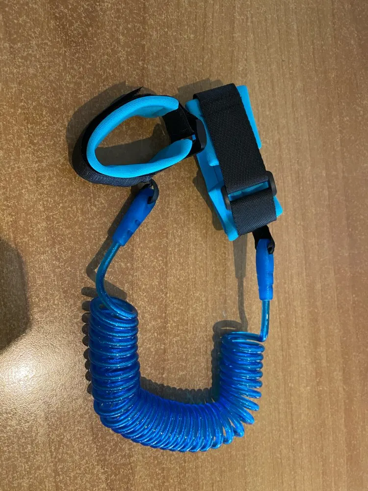 Пришел так же, как на фото. Очень крепкий на ощупь, но все еще имеет достаточно подушки для запястья ребенка и родителя. Детская сторона имеет 2 липучки, чтобы ребенок мог стараться снимать.