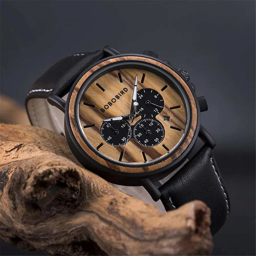 Деревянные мужские часы BOBO BIRD, светящиеся роскошные часы от топ бренда с хронографом, erkek kol saati, Прямая поставка