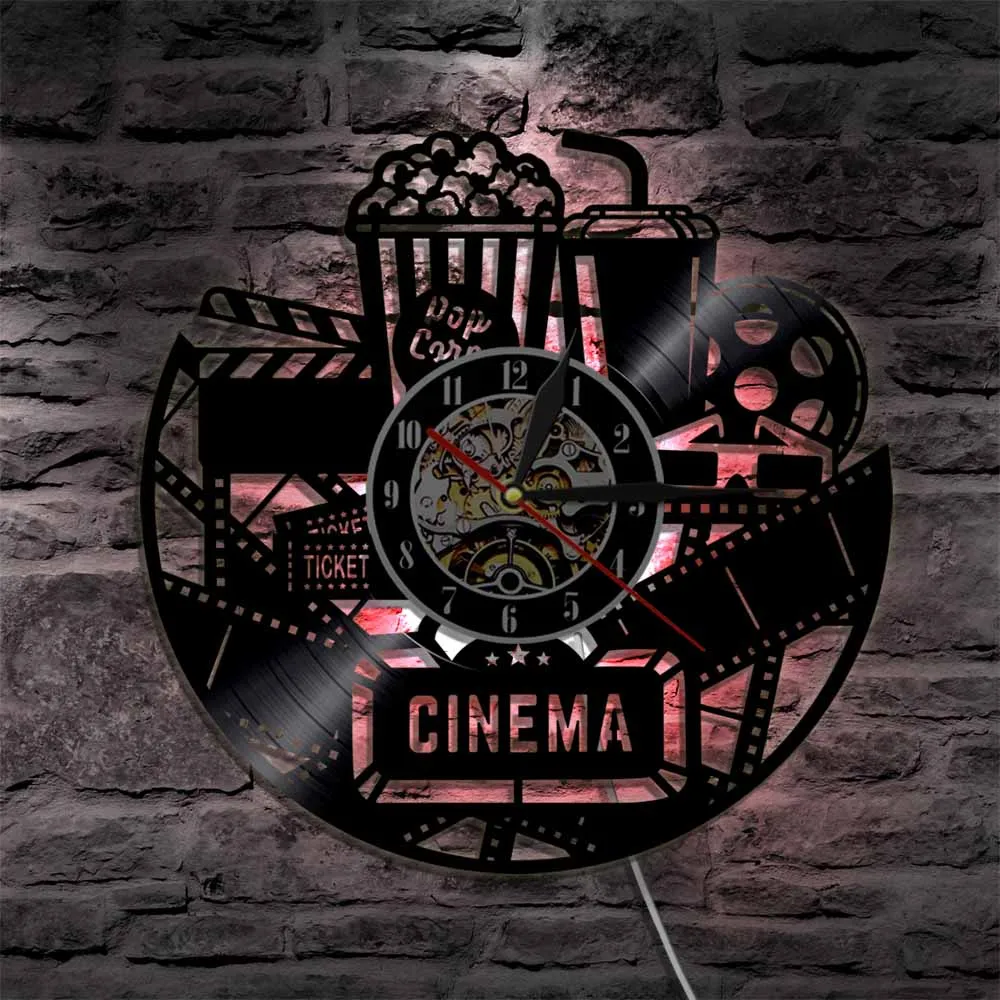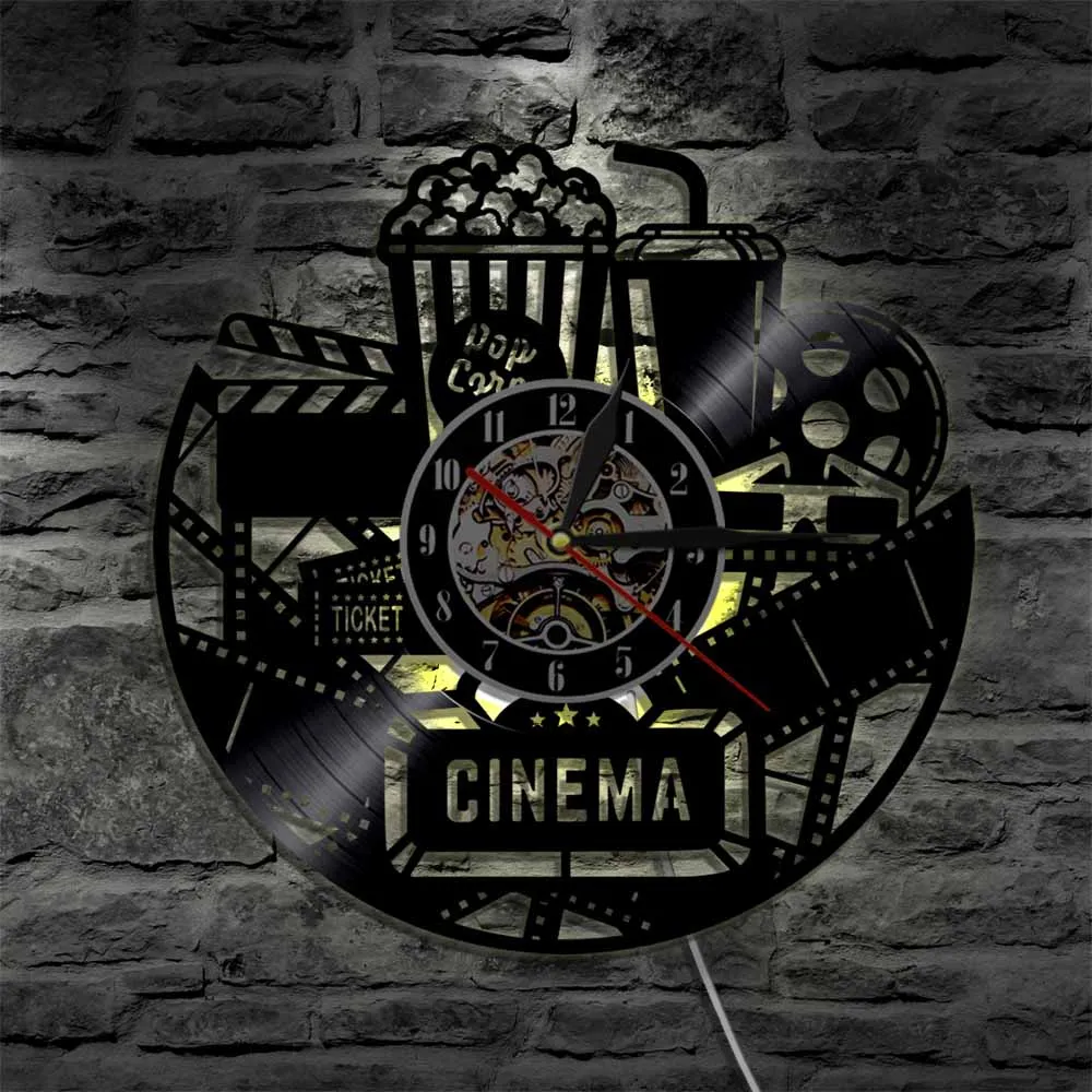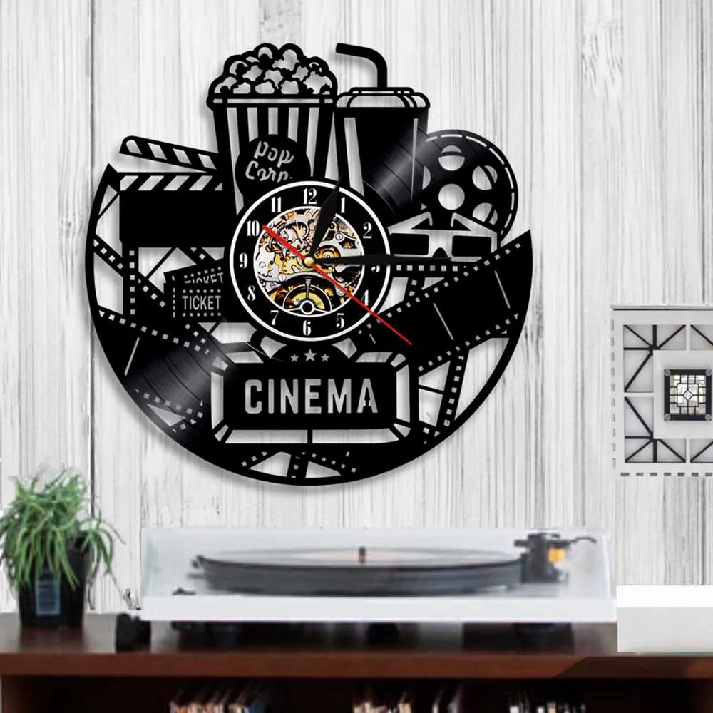 Виниловые настенные часы для кинотеатра, современный дизайн, часы для фильмов, фильмов, часы, ретро-альбом, часы, попкорн-Кокс, подарок для любителей фильмов