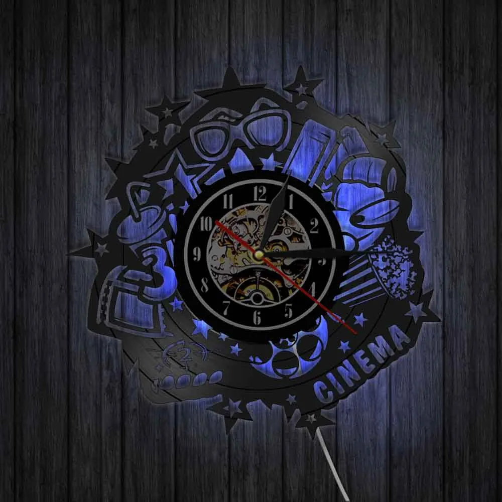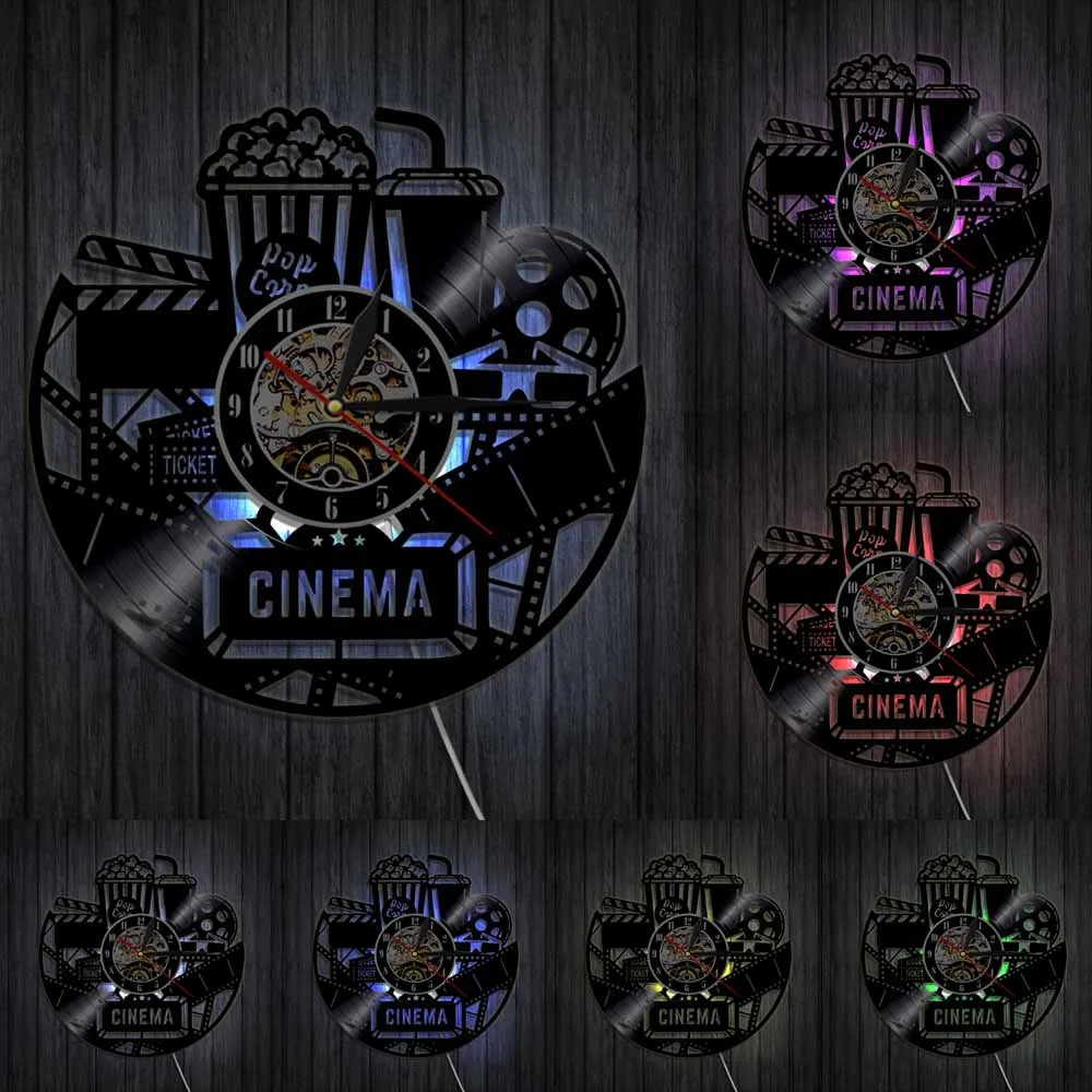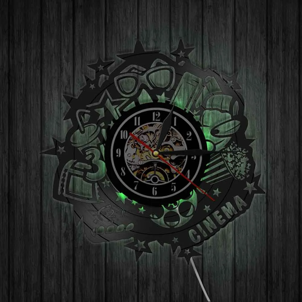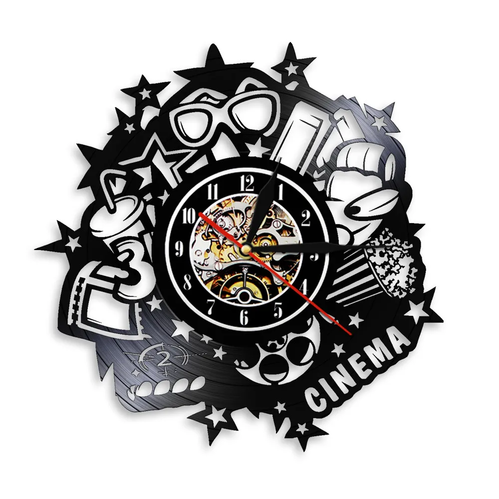 Виниловые настенные часы для кинотеатра, современный дизайн, часы для фильмов, фильмов, часы, ретро-альбом, часы, попкорн-Кокс, подарок для любителей фильмов