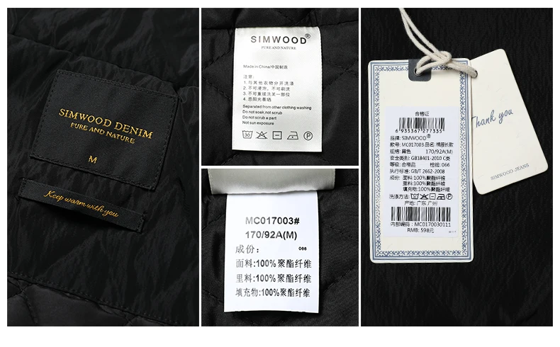 Мужская парка из полиэстера SIMWOOD, зимняя верхняя одежда батальных размеров, легкая и теплая демисезонная курточка, 2019, повс