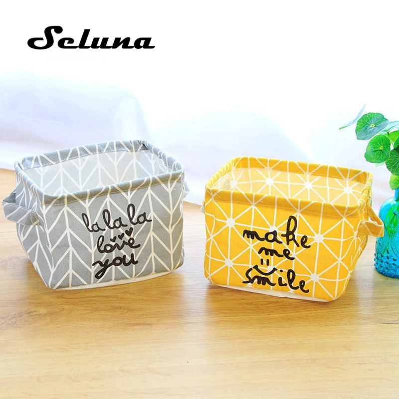 Настольная корзина для хранения, водонепроницаемый Домашний Органайзер с милым принтом, коробка для хранения мелочей из хлопка и льна, сумка для хранения нижнего белья