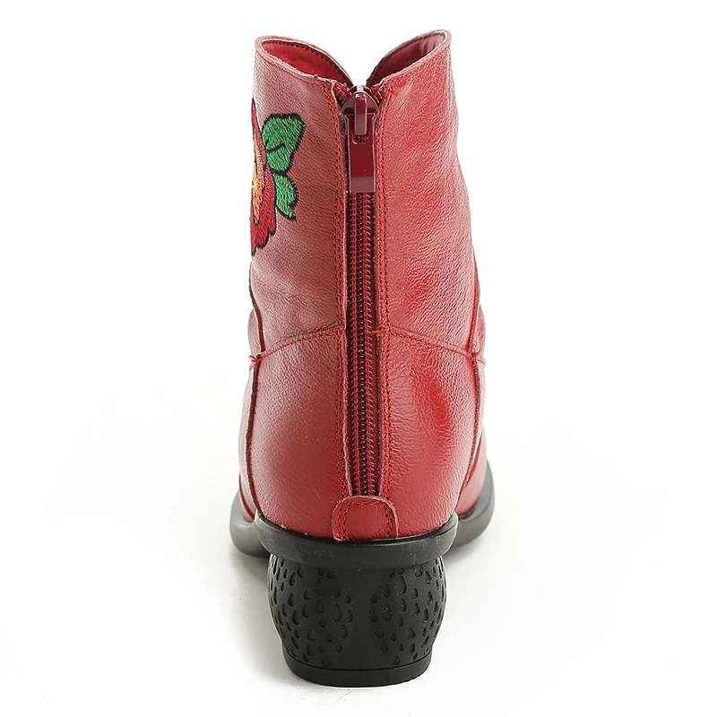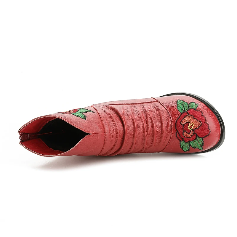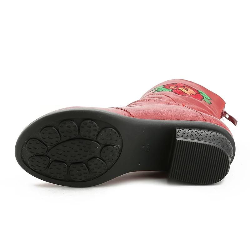 Женские ботильоны с вышивкой Xiuteng, зимние ботинки из натуральной кожи на низком квадратном каблуке, с плюшевой подкладкой, большие размеры