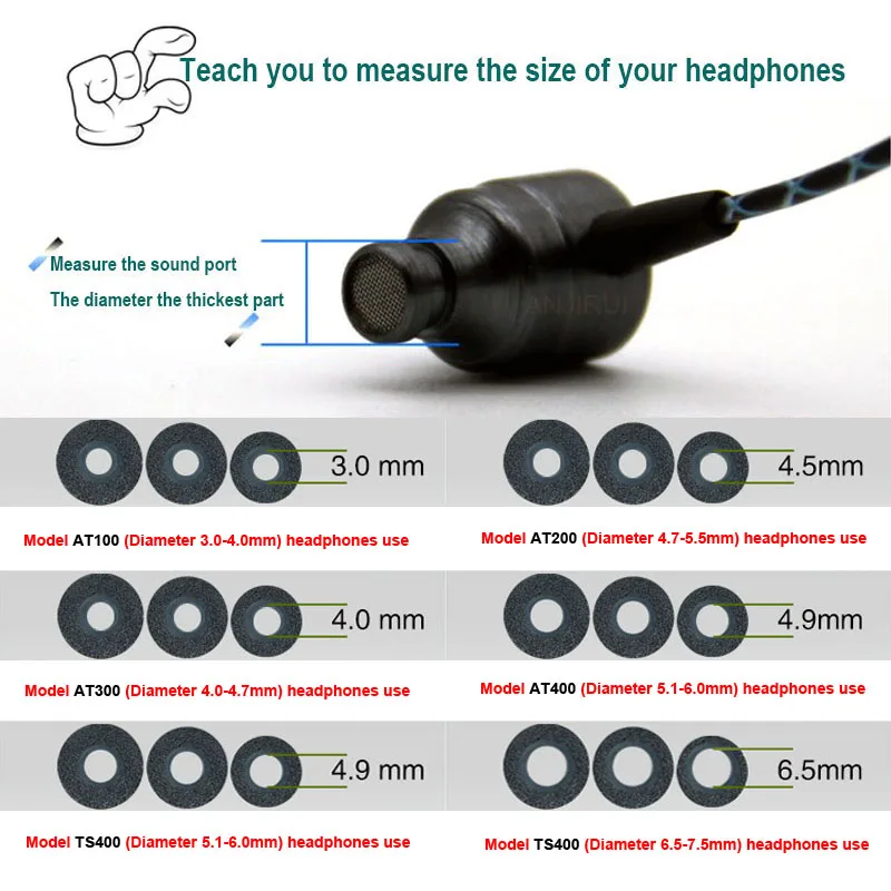 Вкладыши для наушников ANJIRUI T200 (L M S) из пены с эффектом памяти, 2 шт.1 пара