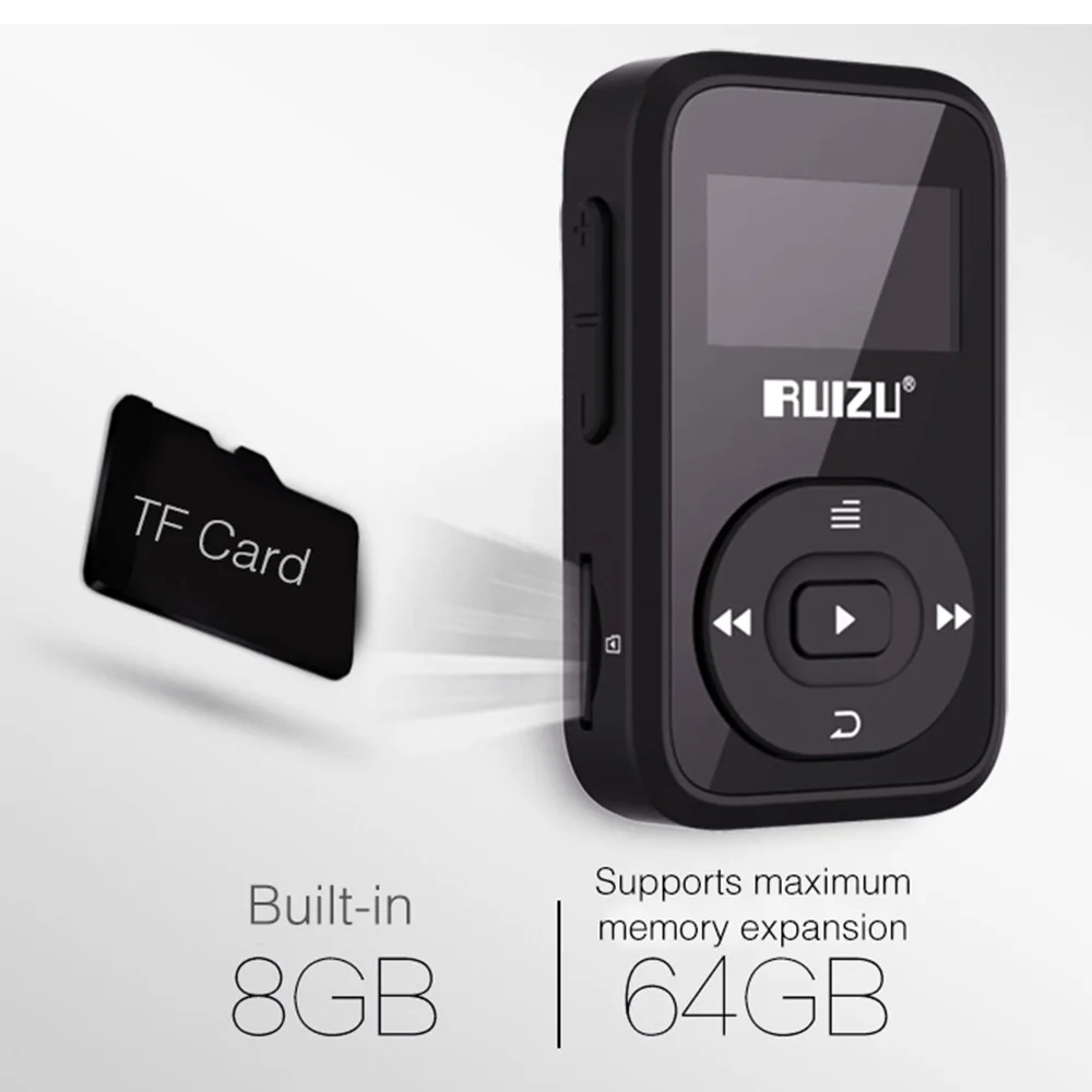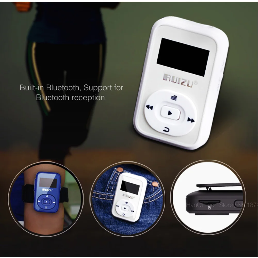 RUIZU X26 Спортивный MP3 музыкальный плеер Bluetooth-совместимый рекордер FM радио Поддержка SD карты клип mp3-плееры 8 Гб Поддержка TF карты