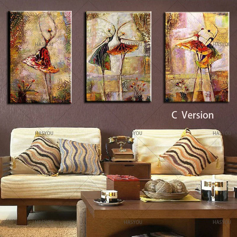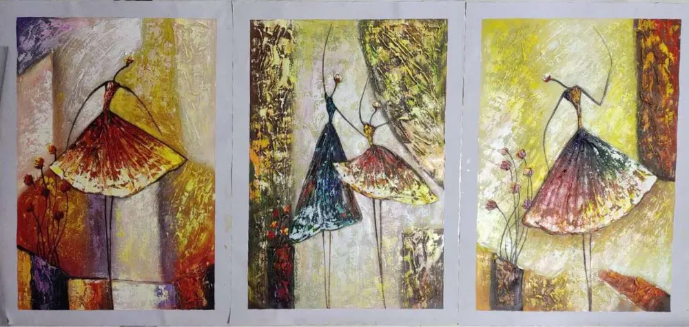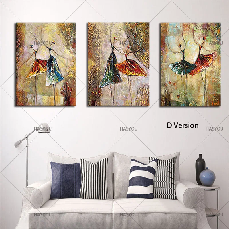 Балет Танцы девушки современные 3 панели 100% ручная роспись Масляные картины на холсте стены искусства работы для гостиной дома украшения