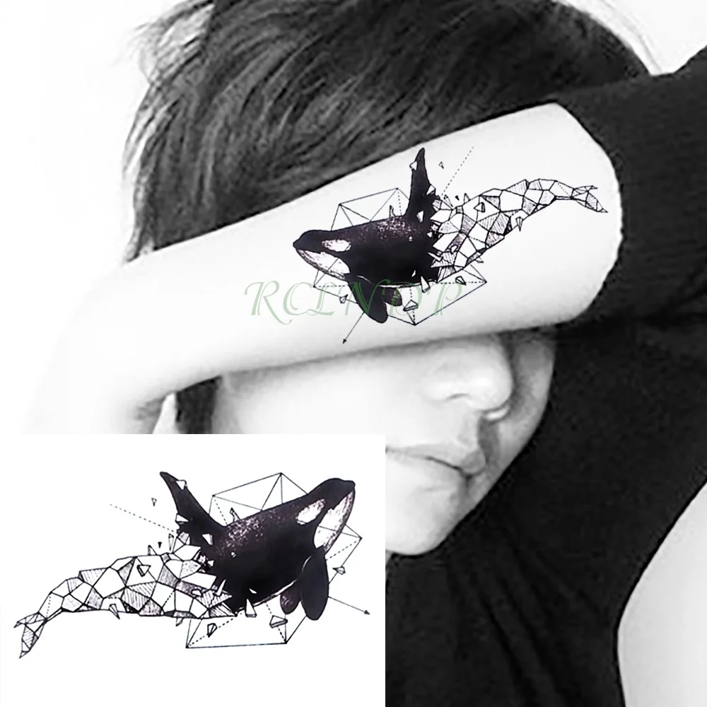 Водостойкие наклейки для татуировок, синие, черные, Кит, поддельные...