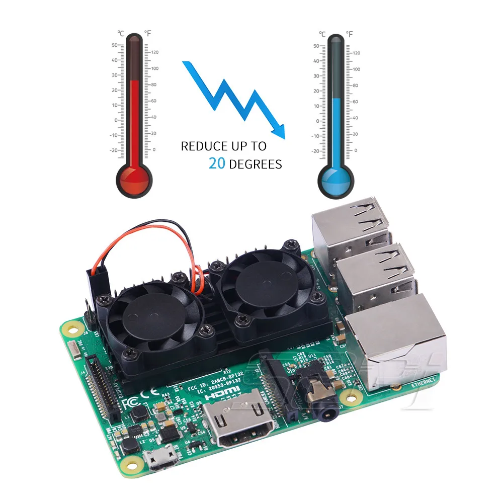 Вентилятор охлаждения обладает высокой скоростью и низким уровнем шума. Он близок к чипу нагрева для лучшего рассеивания тепла. Он идеально подходит для Raspberry Pi 3 Model B и совместим со всеми чехлами Raspberry Pi 3.