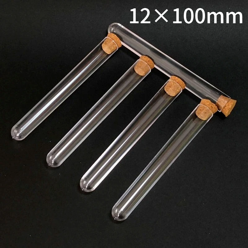 Лабораторная прозрачная пластиковая пробирка 100 шт.лот 12x100 мм, круглая трубка с пробкой