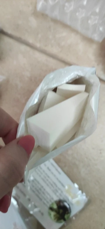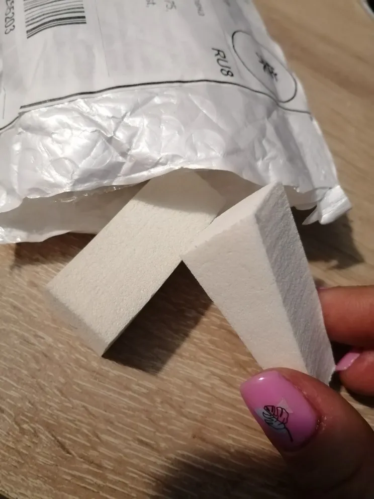 Пришли не в отдельном пакете, одна из сторон губки была полностью жёлтая. Имеют токсичненький запах, но сойдёт. Спасибо.