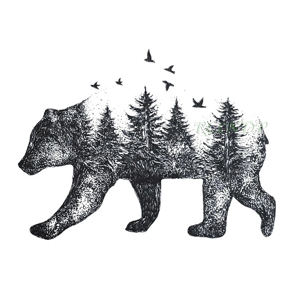 Временная татуировка унисекс флэш-тату, водостойкая, Сибирский лес, медведь, дерево, птица, лиса, Сова, волк, КИТ
