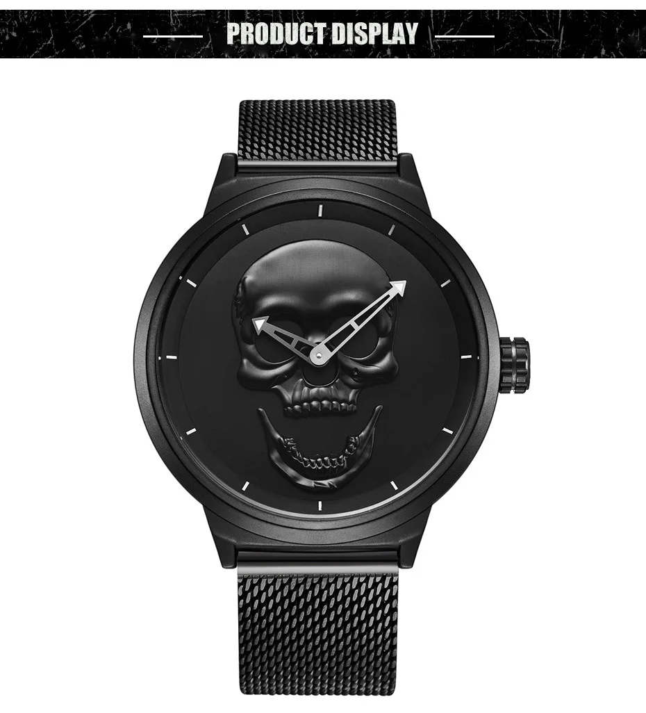 Часы наручные мужские кварцевые, модные повседневные брендовые, с золотым черепом, из нержавеющей стали, черные