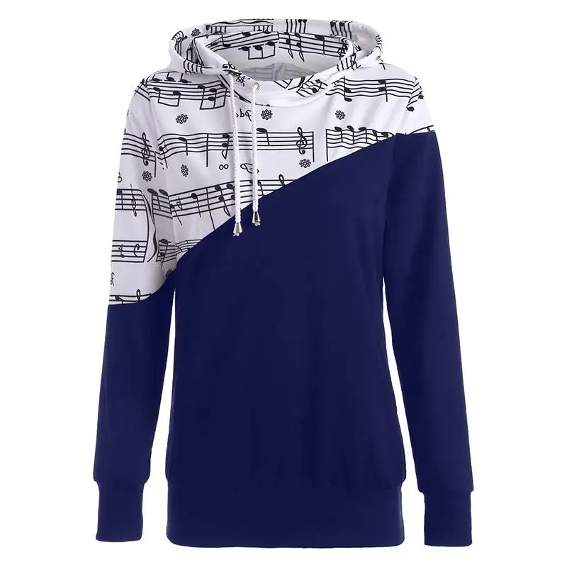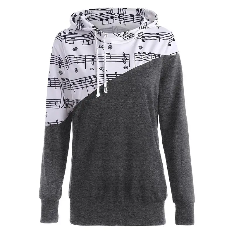 Женские толстовки с капюшоном, зимние пуловеры с изображением музыкальных нот, Приталенный свитшот, модный топ WS4099C