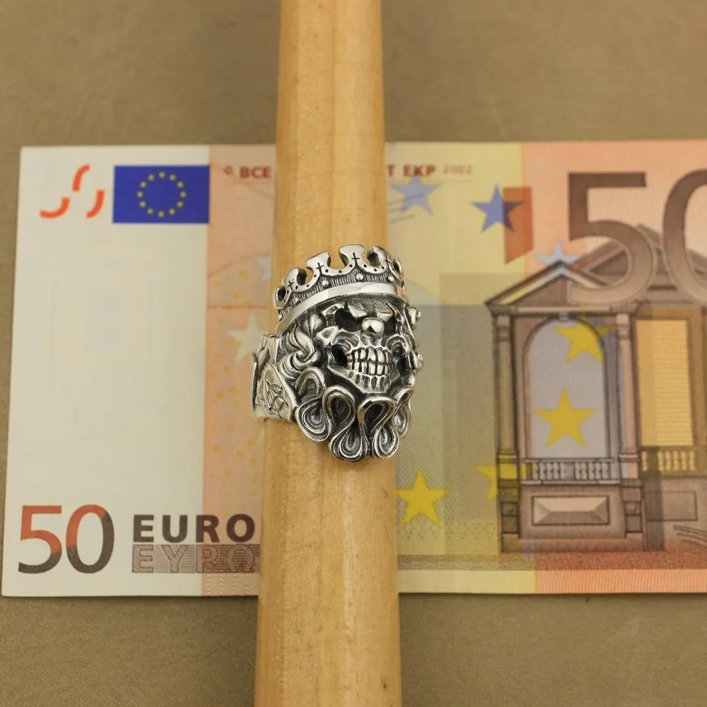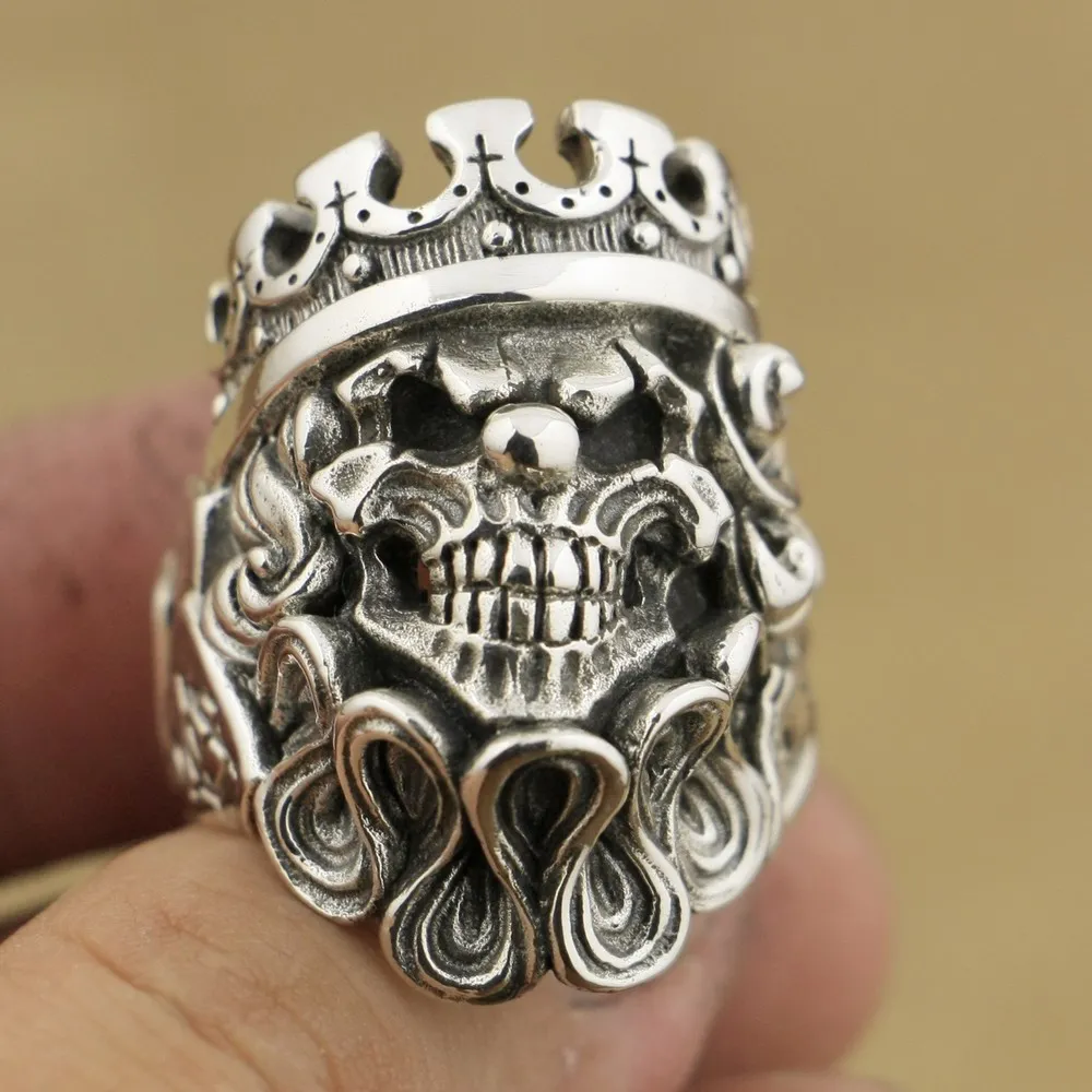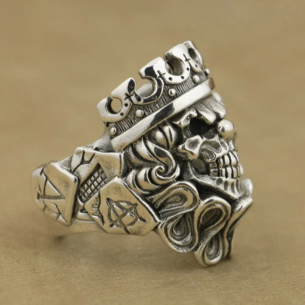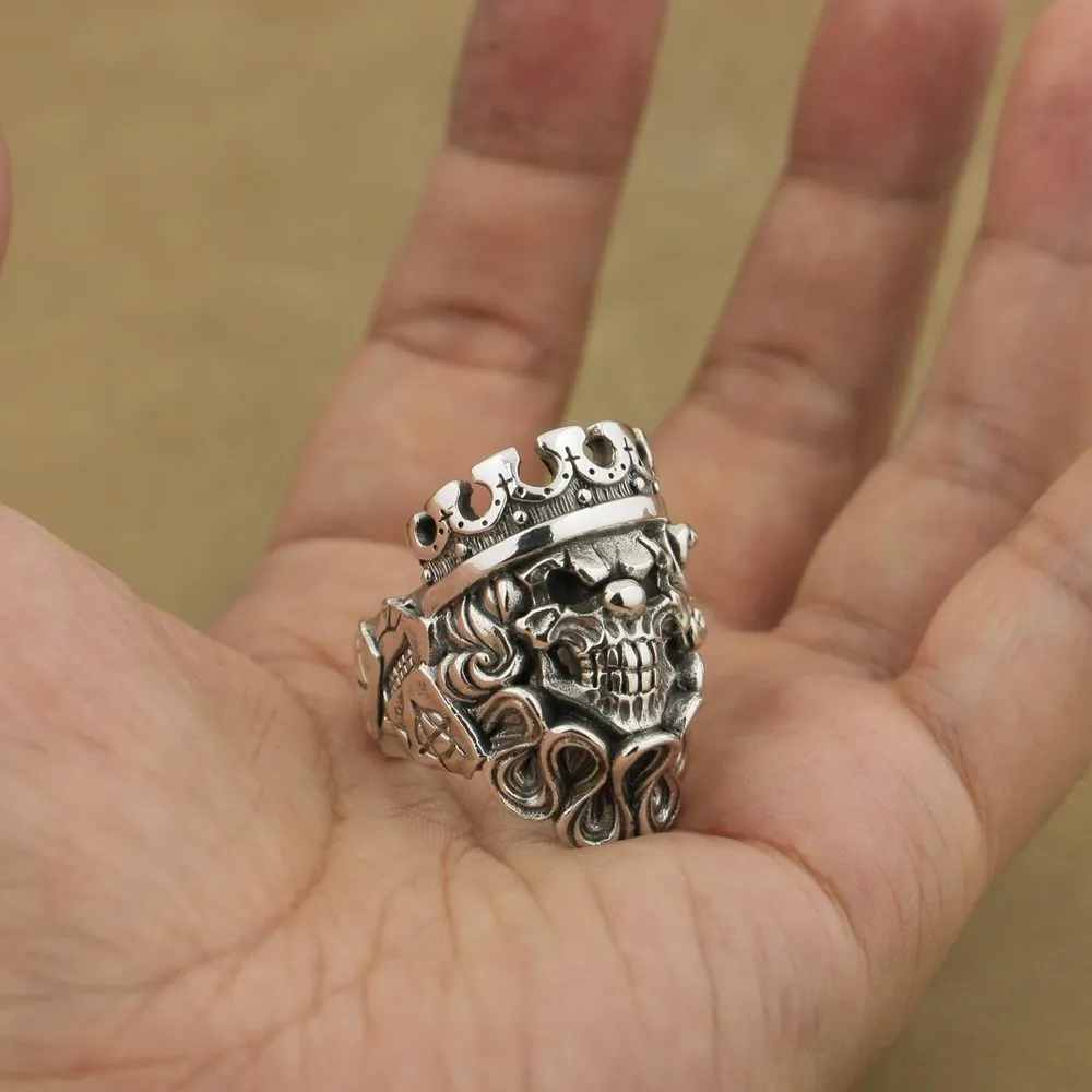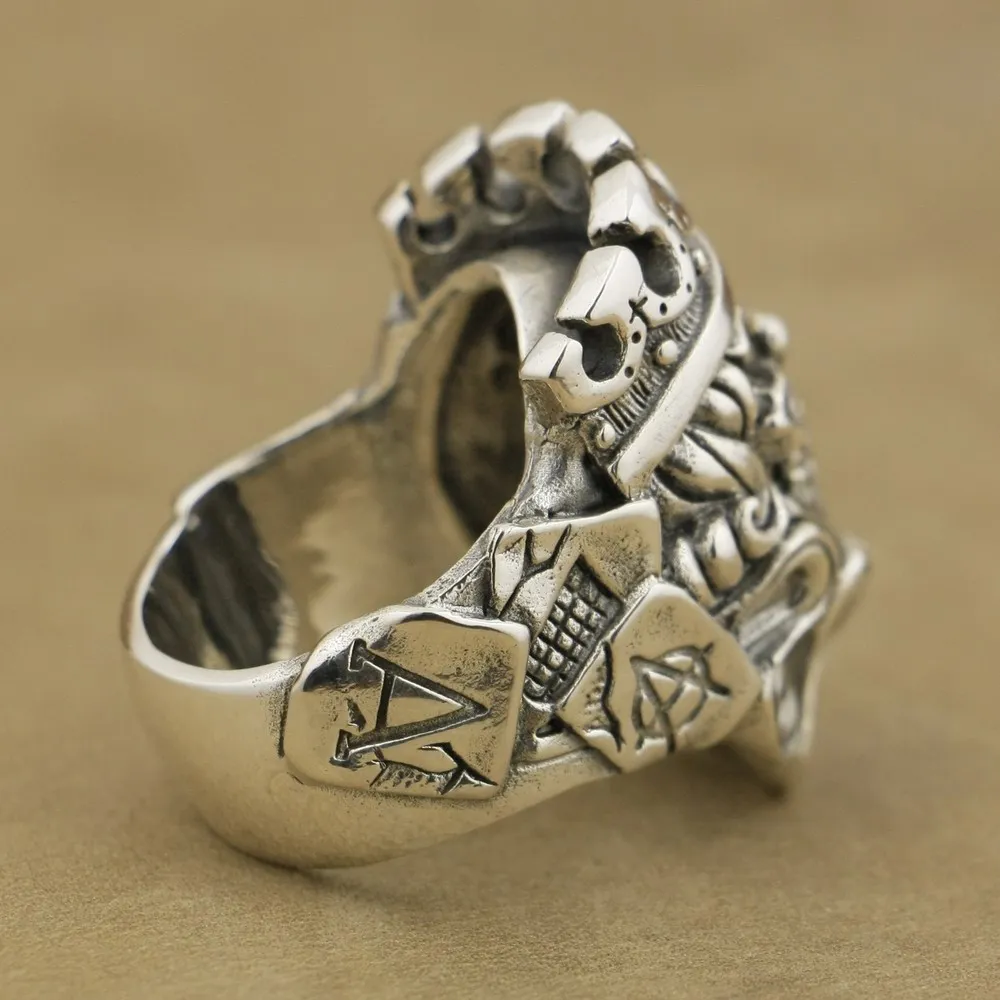 Мужское серебряное кольцо ручной работы LINSION, байкерское кольцо в стиле панк с черепом и клоуном, размеры США 7-15, TA70