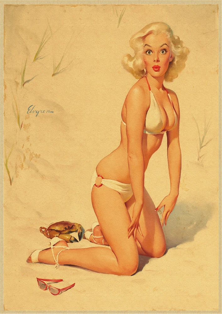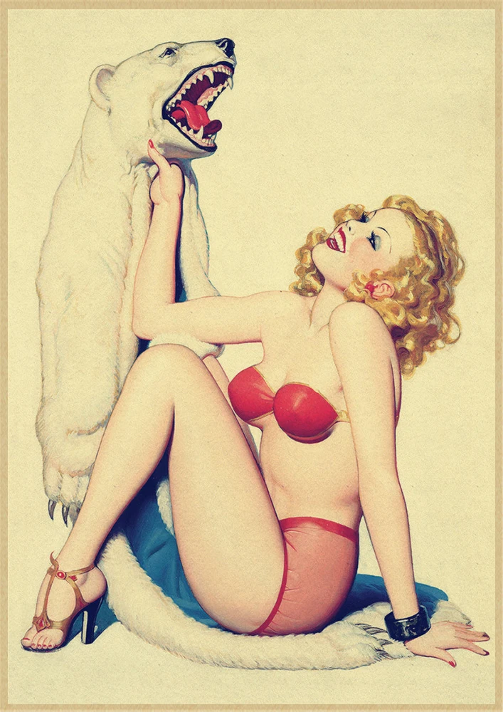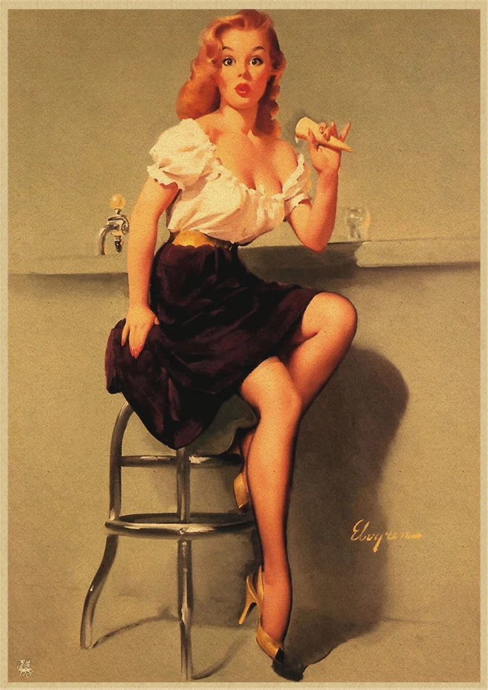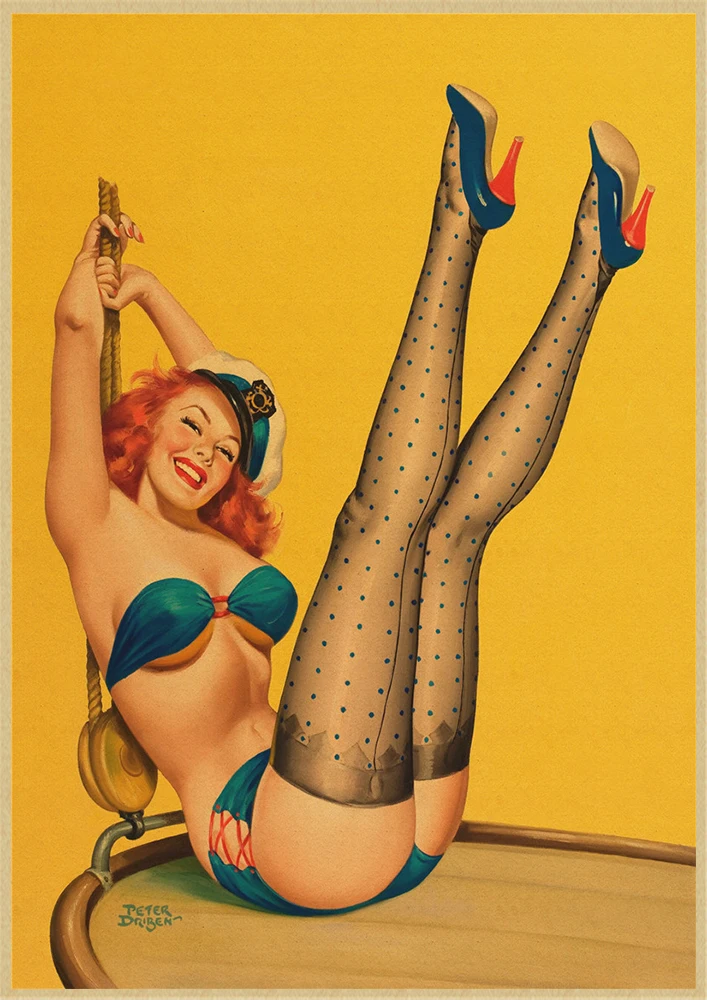 PINUP GIRLS 2 Вторая мировая война, винтажный постер из крафтовой бумаги, Классический постер для бара, кафе, гостиной, столовой, настенные декоративные картины