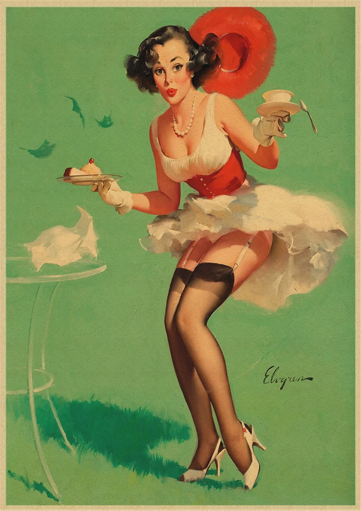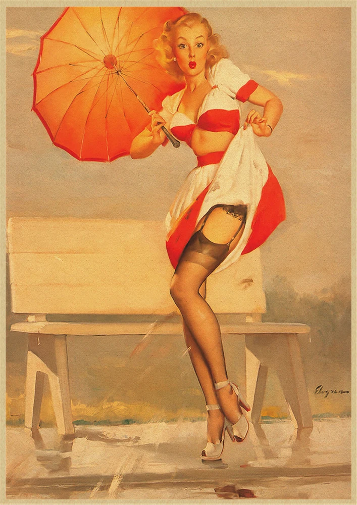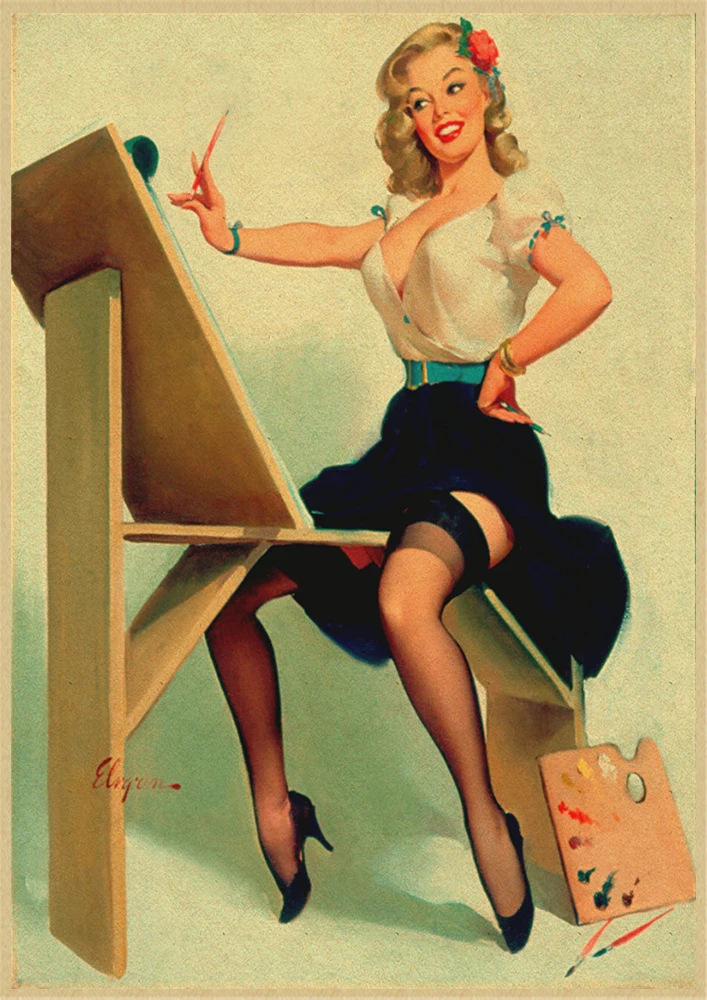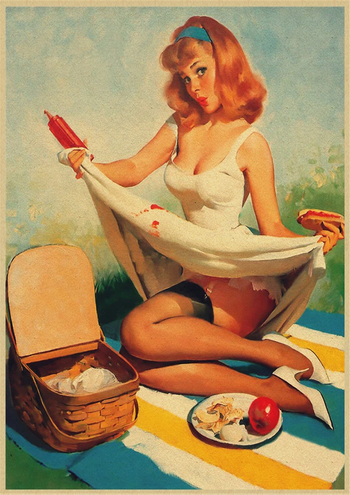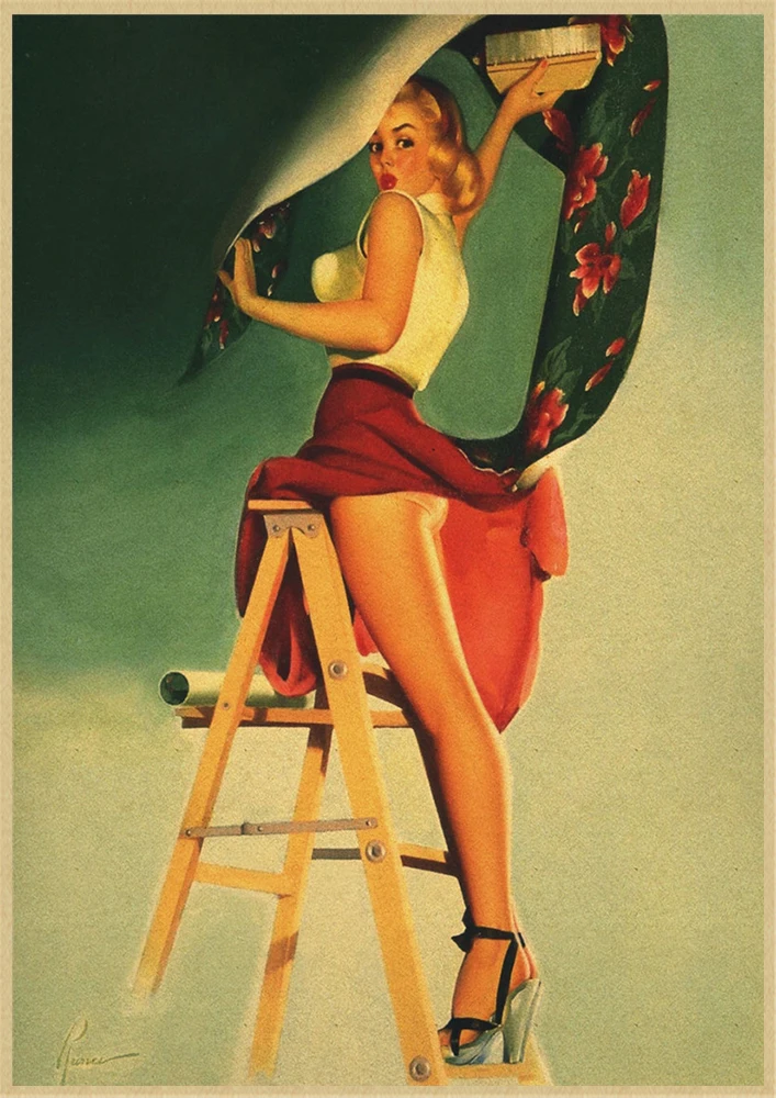 PINUP GIRLS 2 Вторая мировая война, винтажный постер из крафтовой бумаги, Классический постер для бара, кафе, гостиной, столовой, настенные декоративные картины