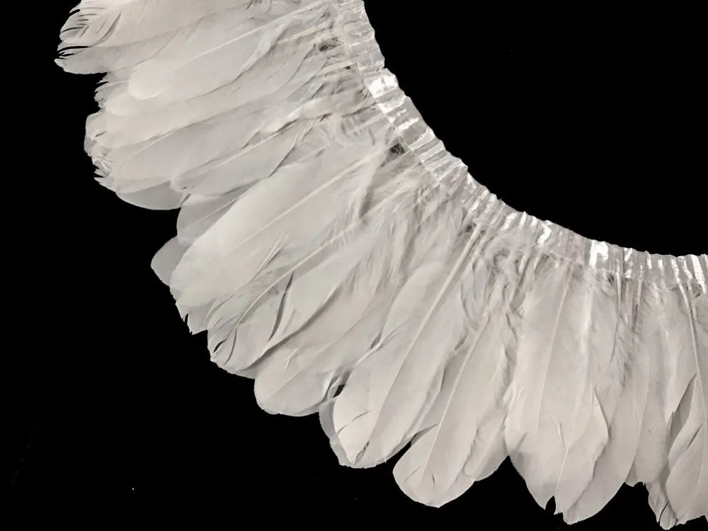 Оптовая продажа 2 млот крашеные белые гусиные перья планки настоящие гусиные перья ленты с бахромой платье пояс декоративная одежда