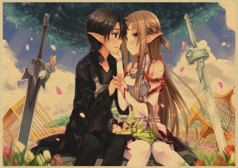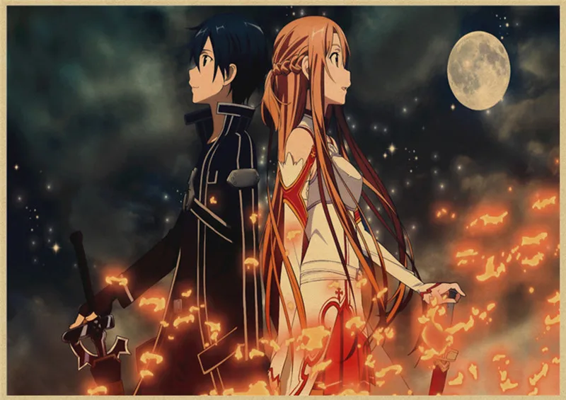 LeagueVideo, игра, меч, искусство онлайн, Kirito Asuna, японское аниме, рандомная живопись, искусство, настенные картины для гостиной, домашний декор