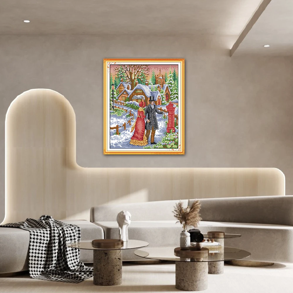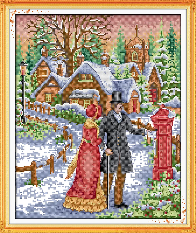Радость воскресенье снежные пару крест стежка F333 14CT 11CT Счетный и печатью украшения дома ходьбы по снегу наборы для вышивки крестом