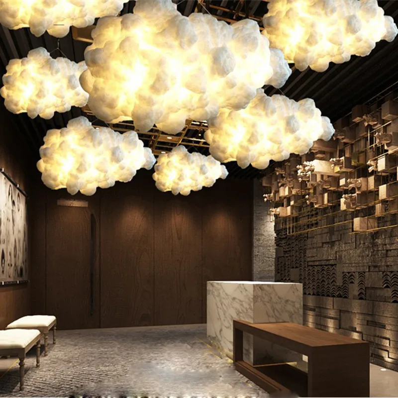 Плавающая люстра с белыми облаками, декоративные облака, свет, лобб...