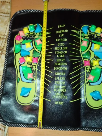 Посылка пришла быстро сборная из пяти. Сначала шла по Китаю почтой, а затем собрали другие посылки и дальше везли транспортной компанией DPD. Отслеживалась по всему маршруту. коврик пришёл хорошо упакованным. Размеры видны на фото. Единственное огорчение, что на мой 45 размер маловат будет. Подошёл жене. Товар полностью соответствует описанию. Пластиковые камешки хорошо массируют подошвы.