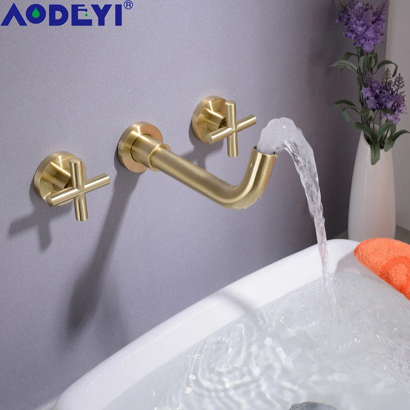 2 ручки настенный смеситель для туалетного столика в ванной комнате с 360 поворотный носик необработанный клапан в комплекте, латунь, матовый золото матового черного цвета