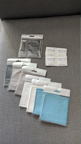 8 высококачественных микроволоконных салфеток и большая поверхность 20x20 см. 4 салфетки для алкоголя предлагаются. Очень быстрая доставка. Я благодарю этого очень серьезного продавца.