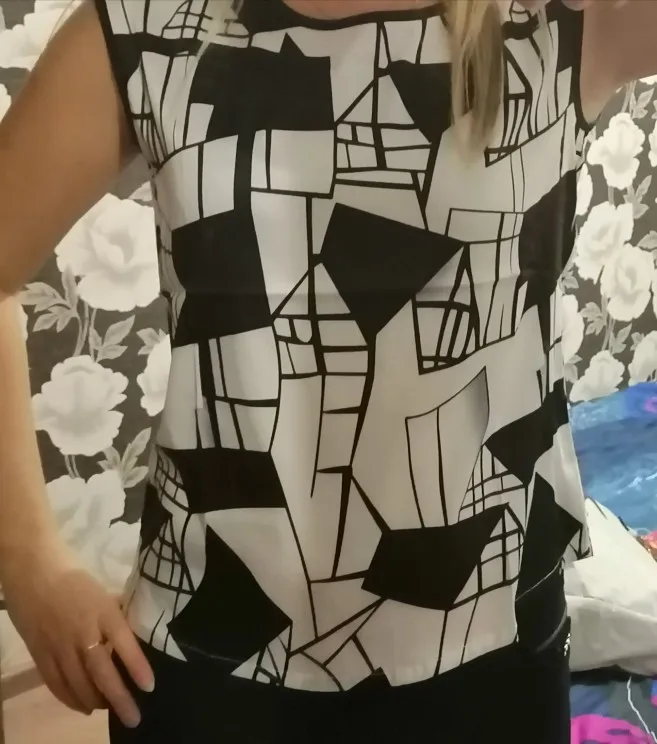 Шикарная блузка! Идеальное качество! Плотная, мягкая, тянется, швы ровные, рисунок как на картинке. Размер 4 xl на 48-50 rus. Наконец-то по размеру на пышную грудь!!! Очень довольна покупкой! Респект производителю. Пришла быстро. Из минусов - не обработана антистатиком, но это легко исправить) Супер-покупка.