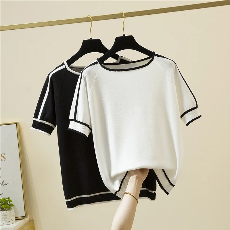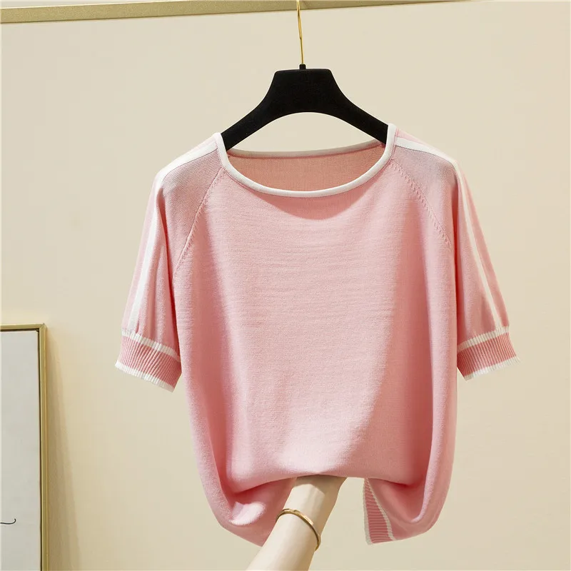 Женская тонкая трикотажная футболка Camisetas, женские летние топы с коротким рукавом, женская одежда, модная футболка в полоску, женская футболка 18841