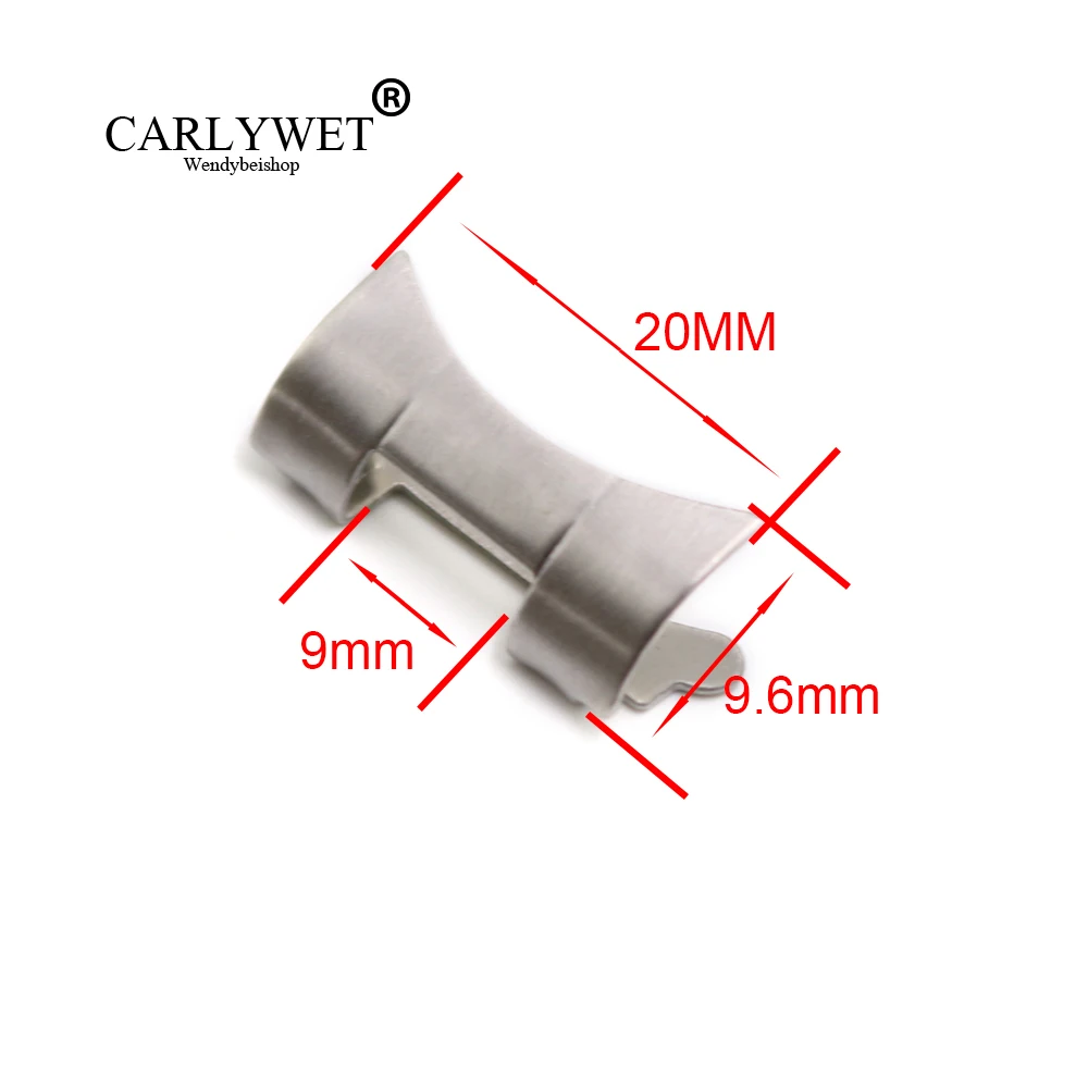 Ремешок для часов CARLYWET из нержавеющей стали, 20 мм, серебристый, полностью покрытый щеткой, изогнутые концевые детали, 2 шт. для ремешка 455B