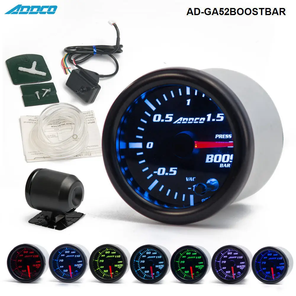 2-дюймовый 52 мм 7-цветный светодиодный датчик дыма для автомобиля, турбонаддува, измеритель с датчиком и держателем AD-GA52BOOSTBAR