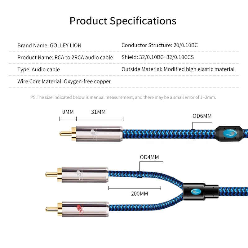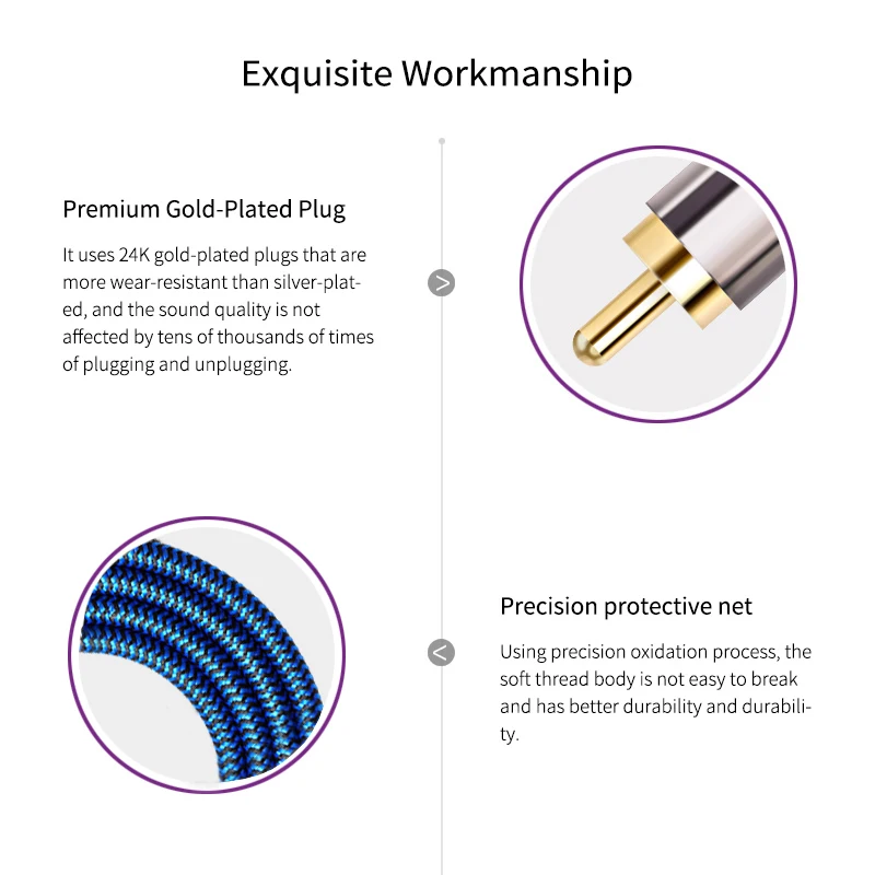 > Кабель основной Проводник:Высокое качество OFC медный провод проводника, с высокой чистотой, антиоксидант, двойное экранирование. Обеспечение высокого качества передачи звука или сигнала и улучшенное звучание. Высококачественный аудиокабель для вашего дома-развлечения, HiFi система, миксер, сабвуфер или более мультимедийных устройств.