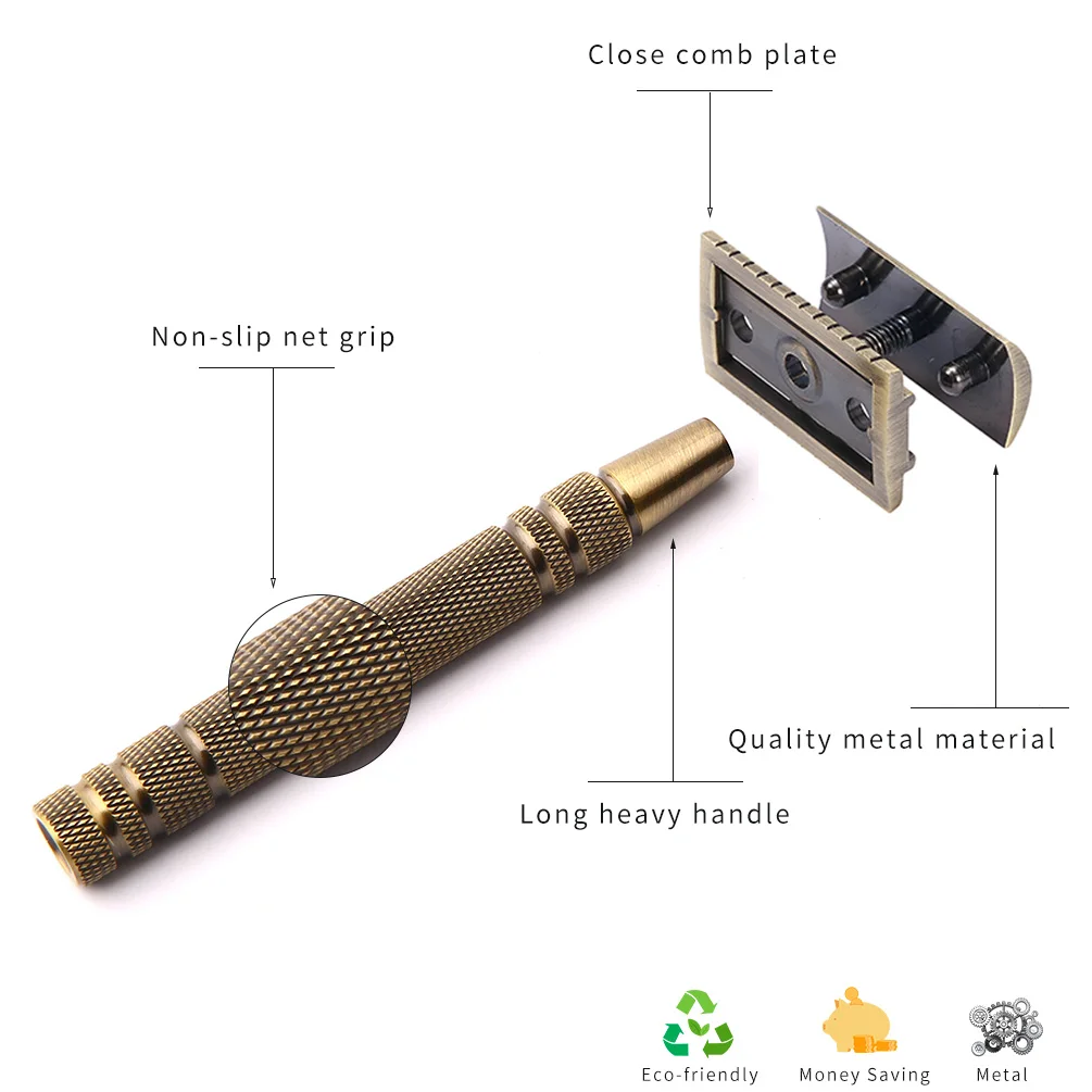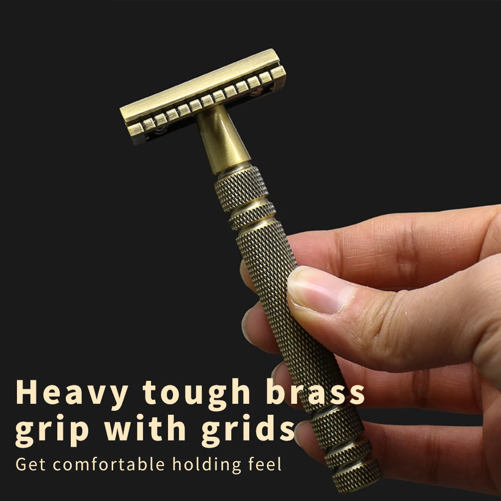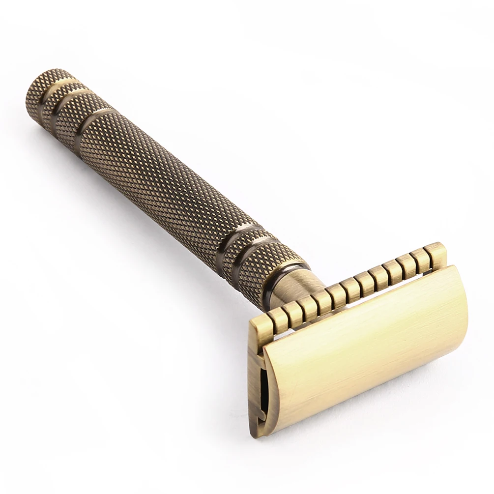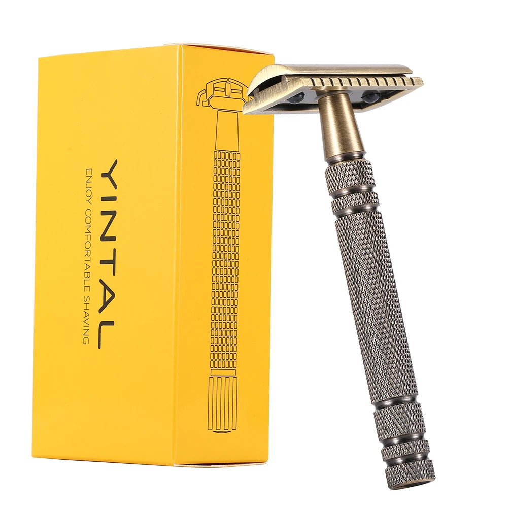 Мужская бронзовая Классическая двусторонняя ручная бритва YINTAL с длинной ручкой, безопасные бритвы из латунного цинкового сплава, 1 Бритва, 5 лезвий