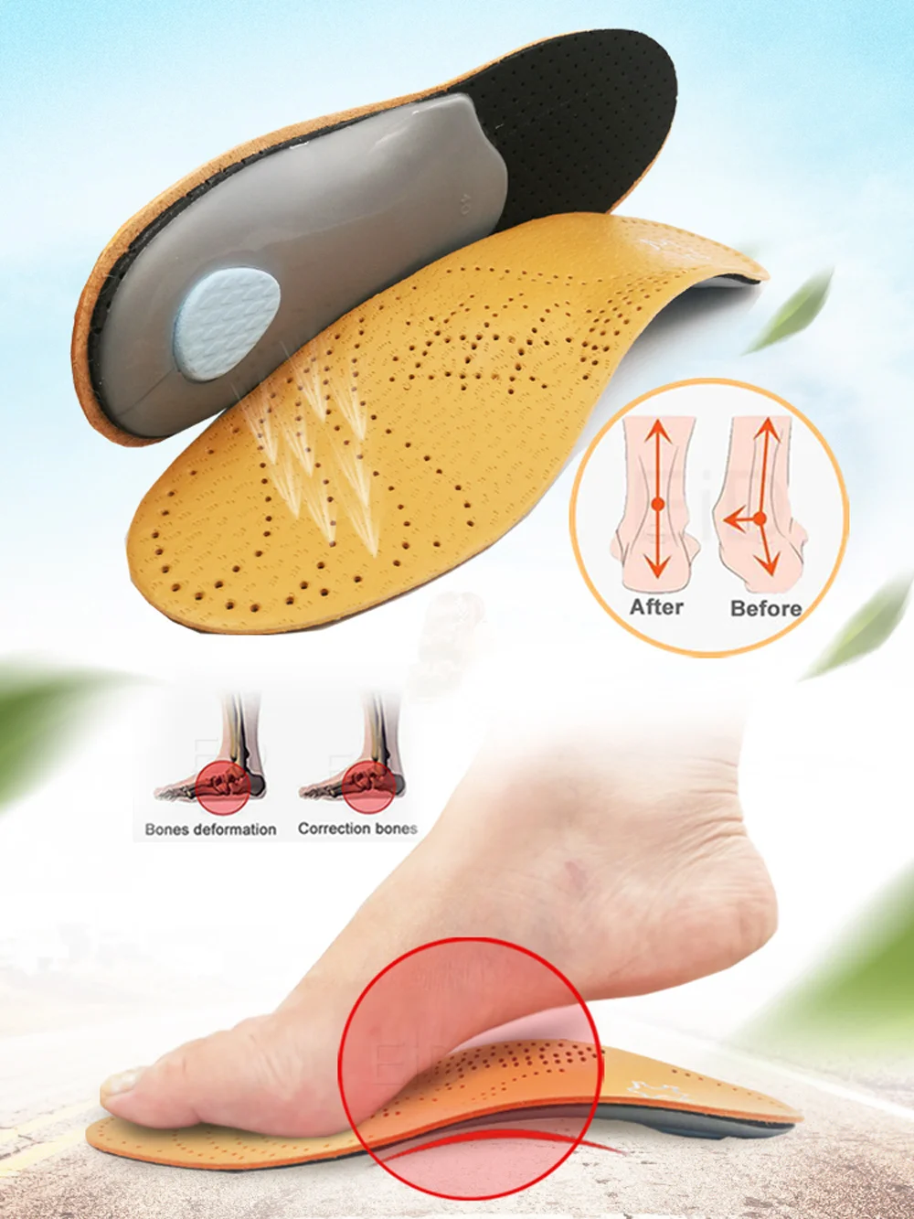 Ортопедические стельки унисекс, кожаные стельки премиум-класса для обуви от плоскостопия, стельки с высоким сводом стопы ортопедическая прокладка для коррекции здоровья бычьих ног