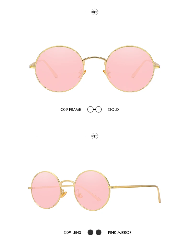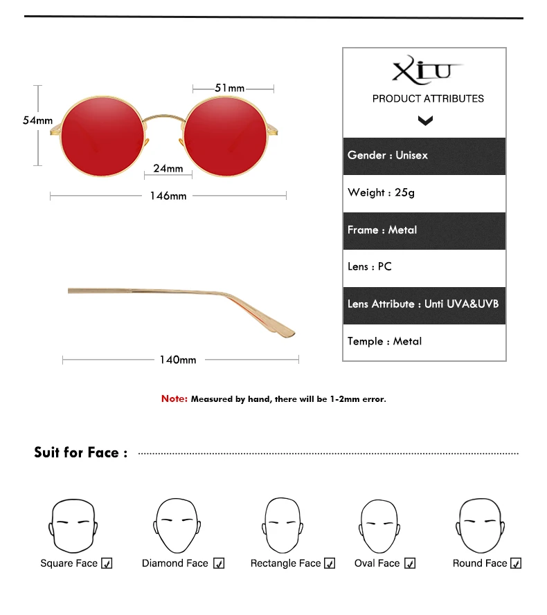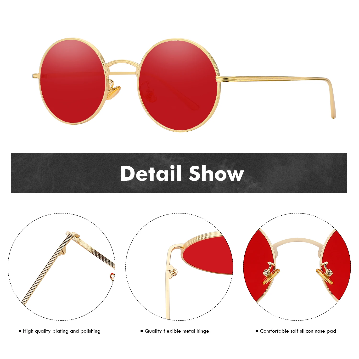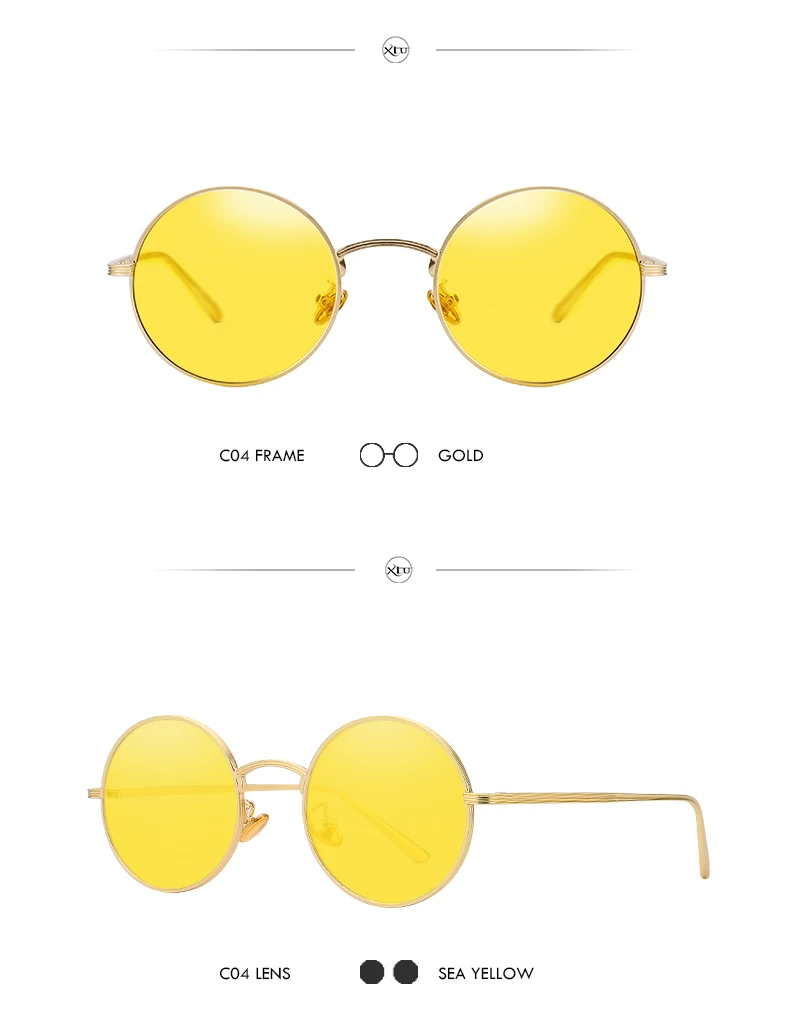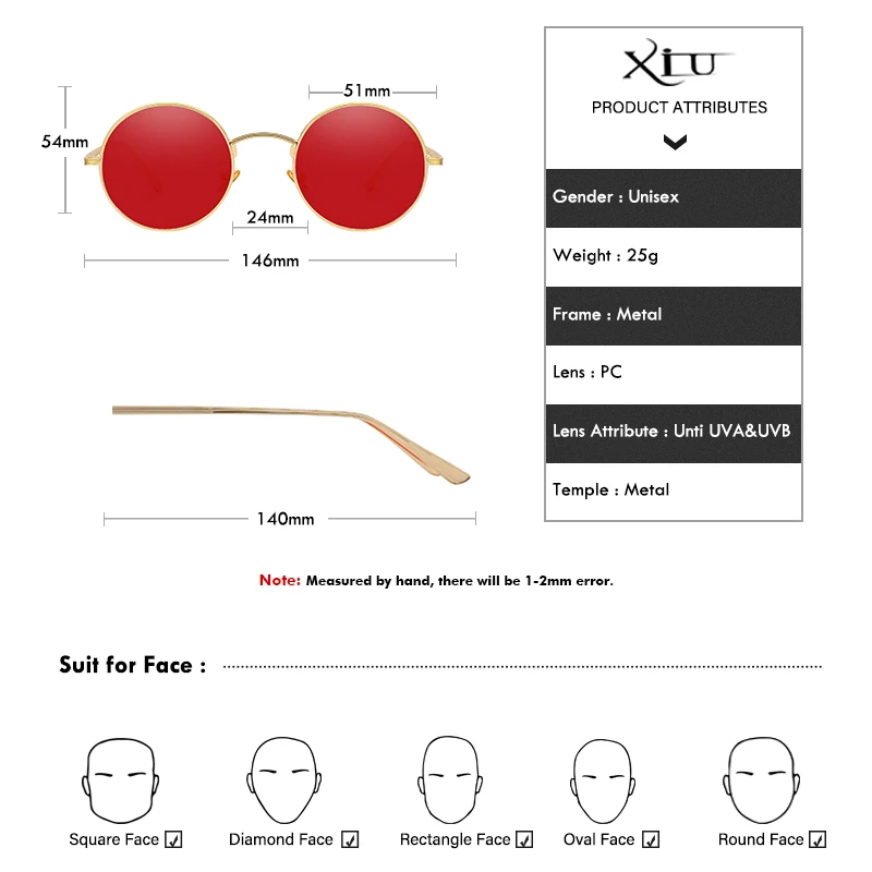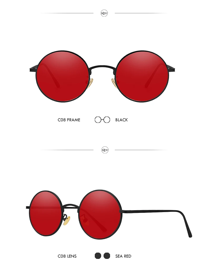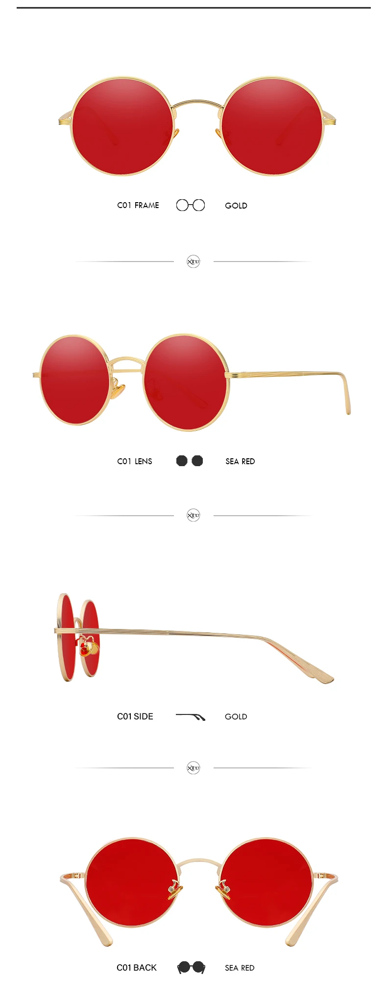 Солнцезащитные очки XIU в круглой металлической оправе UV400 для мужчин и женщин, стильные солнечные аксессуары в стиле ретро, с красными линзами, желтые, розовые, черные, лето 2022