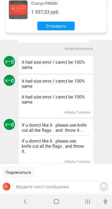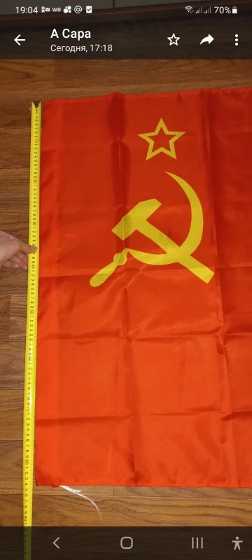 Материал грубый ,жесткий .Размеры флага НЕ соответствуют заявленным продавцом 150/90.Продавец отправил флаги РАЗМЕРОМ 142/84 см. Вид конечно таких размеров не привлекательный. Заказал несколько штук .Я написал продавцу о том ,что размеры флага не соответствуют заявленным .Продавец мне ответил ,что если мне не нравится флаг ,то мне нужно его разрезать ножом и выбросить. Таких сообщений прошла куча .Не вздумайте покуп@ть флаги у данного продавца .Обм@нет да еще и нагрубит .