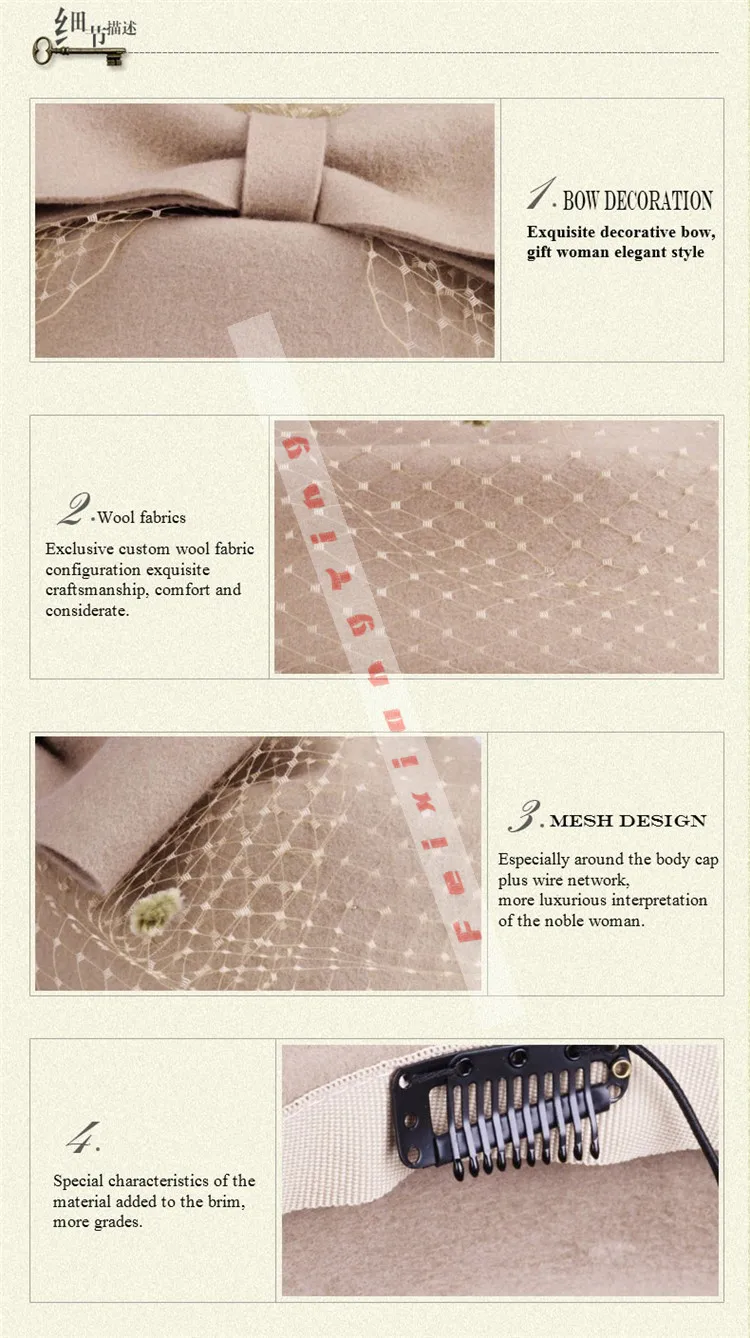 Australian Hats Bride Elegant Wool Gauze Bow Airline Stewardess White Women's Fedora Caps Formal Lady Hat Royal Style DomeChapeu