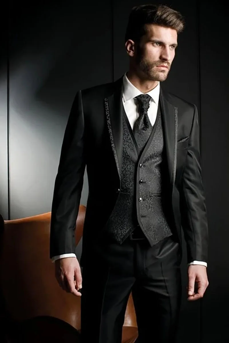 Новое поступление, мужской пик Grooms, черный отворот смокинг для жениха бордовый мужские костюмы, Свадебный блейзер для лучшего человека (пиджак + брюки + жилет)