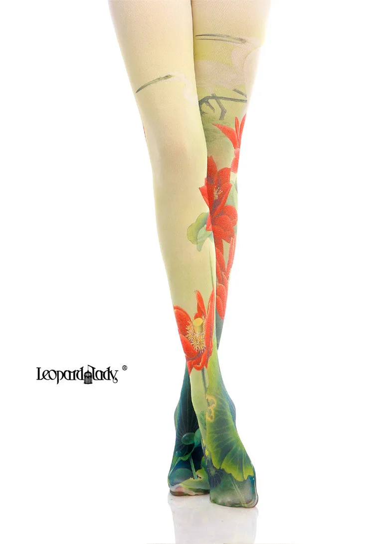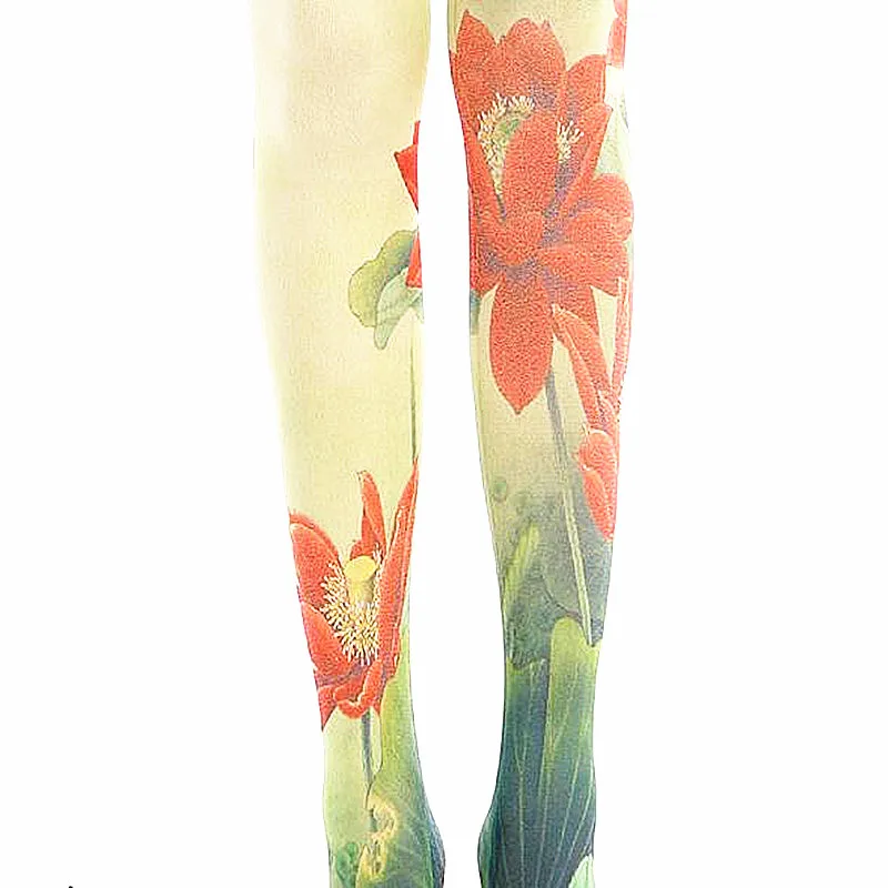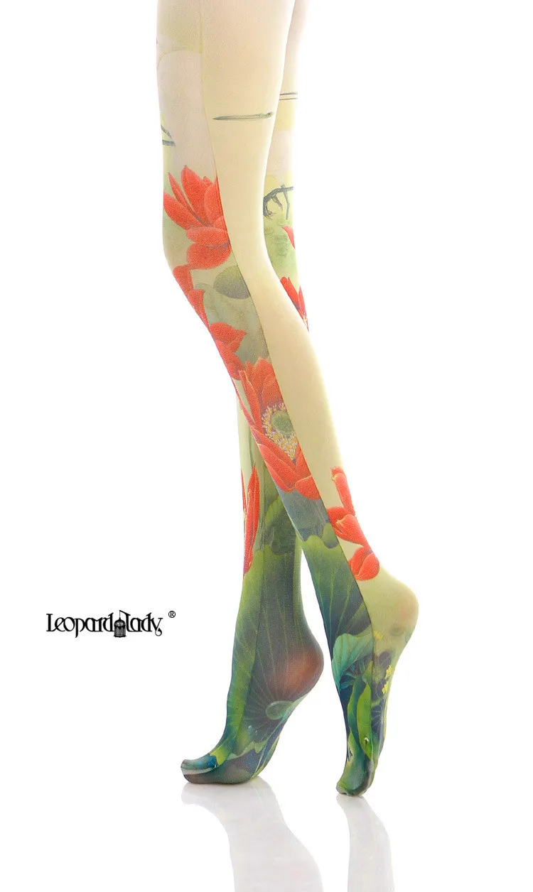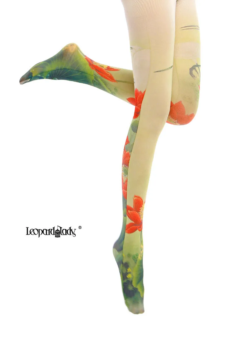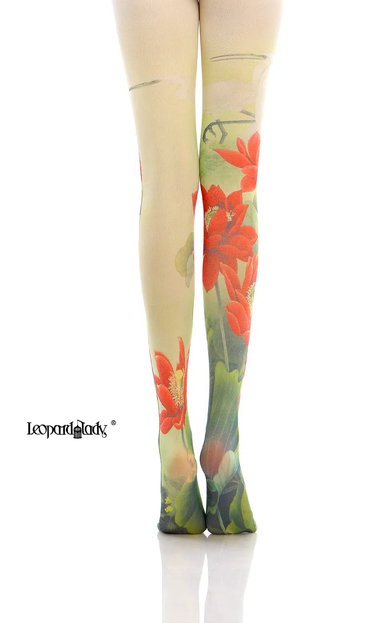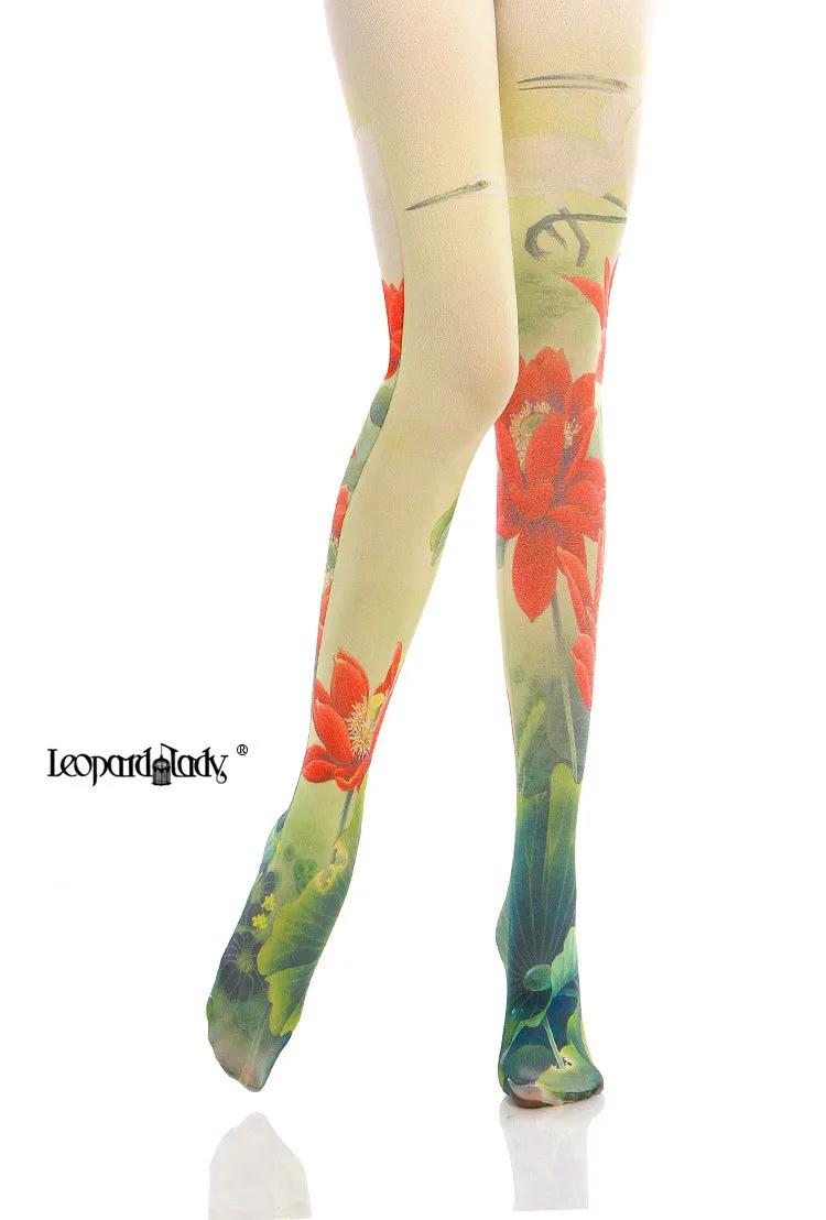 Женские колготки с китайским цветочным принтом лотоса Harajuku Lolita, гладкие и теплые технологии, супер тянущиеся колготки, леггинсы для девочек